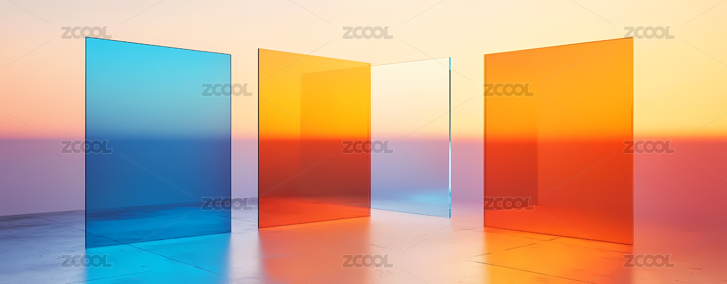 壁纸,3D,背景,玻璃,三维立体,AI数字艺术,光,色彩,日落,天空