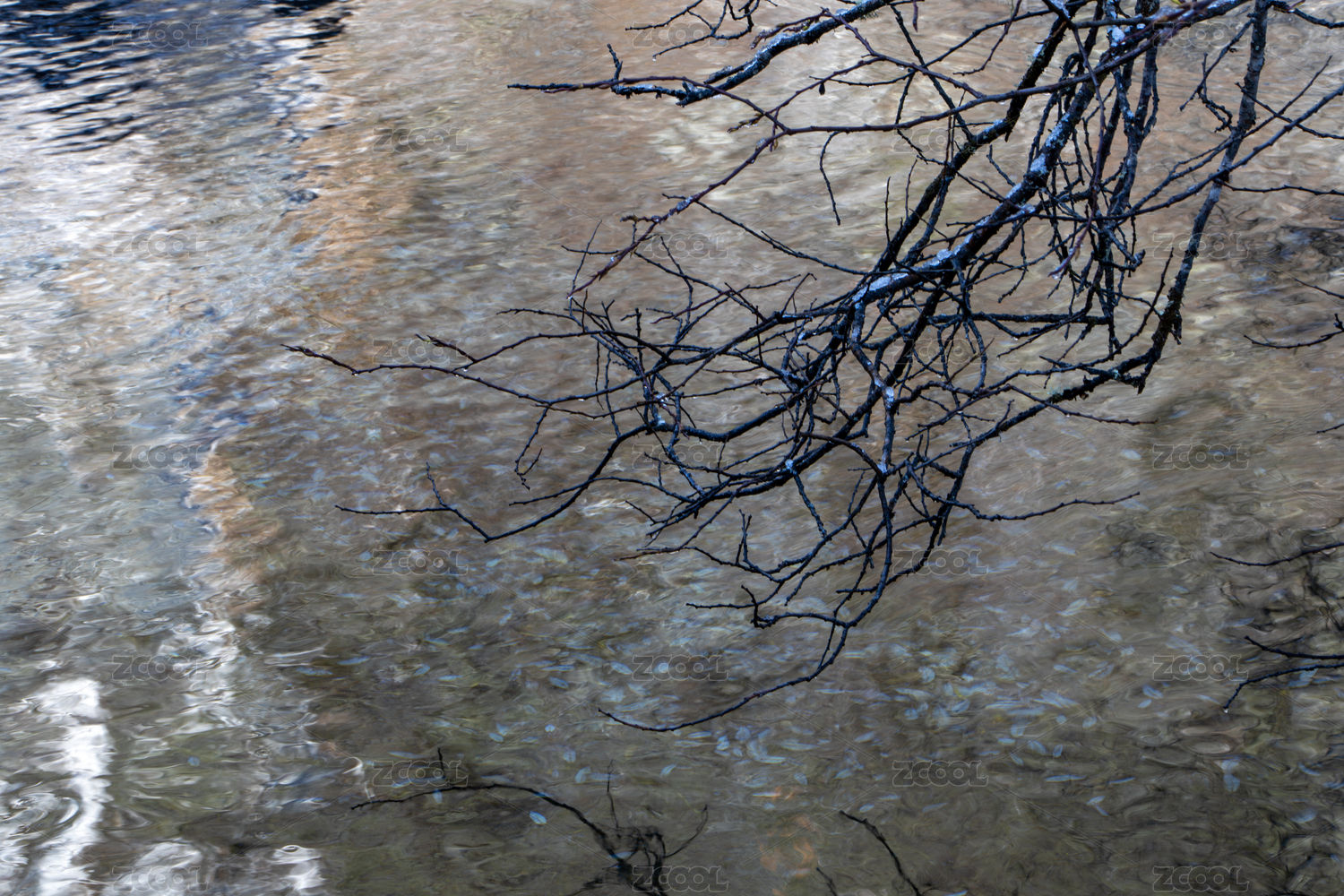 九寨沟秋色,静谧蓝色湖面和金秋黄叶