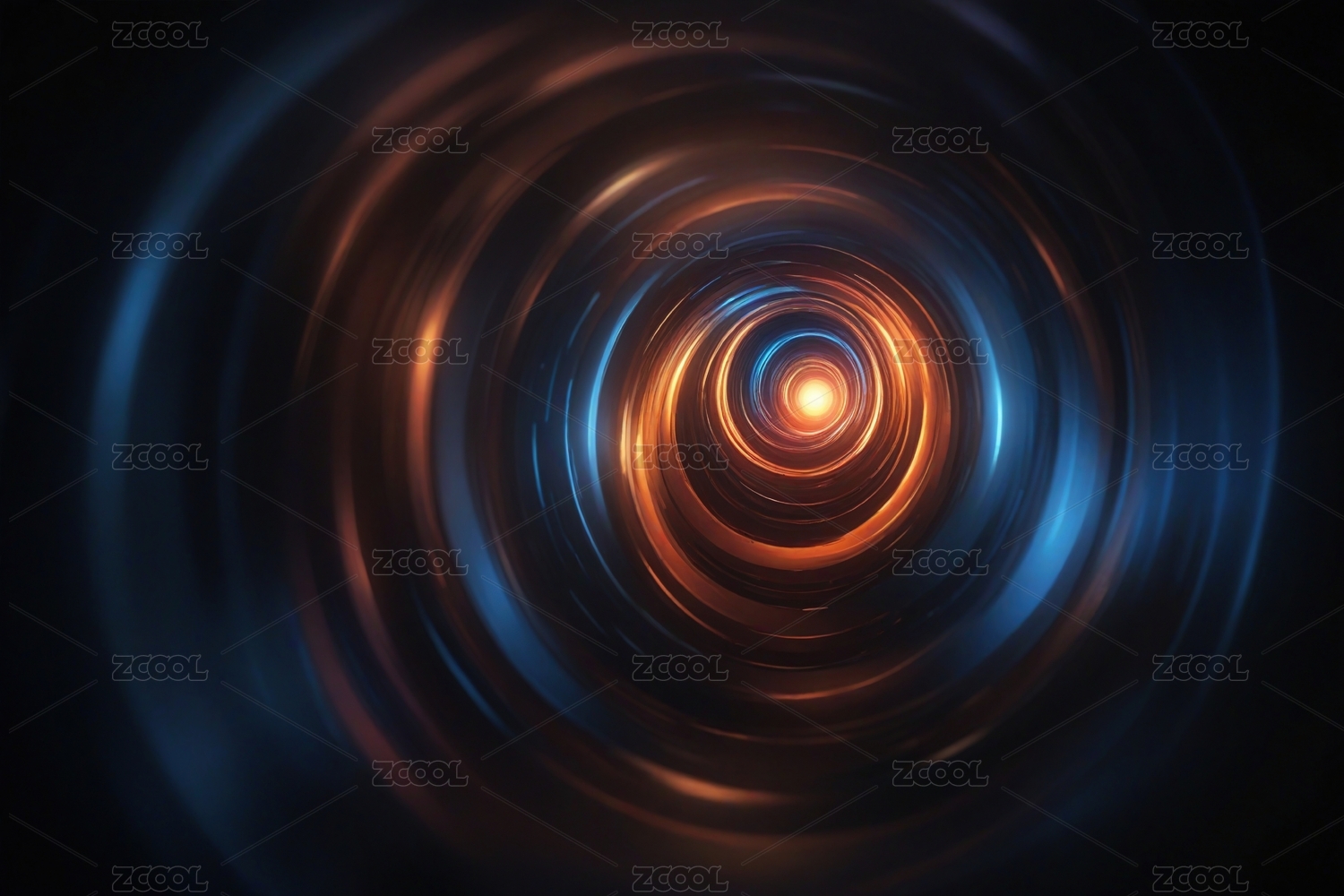 深色背景下蓝色和橙色的波浪光环背景