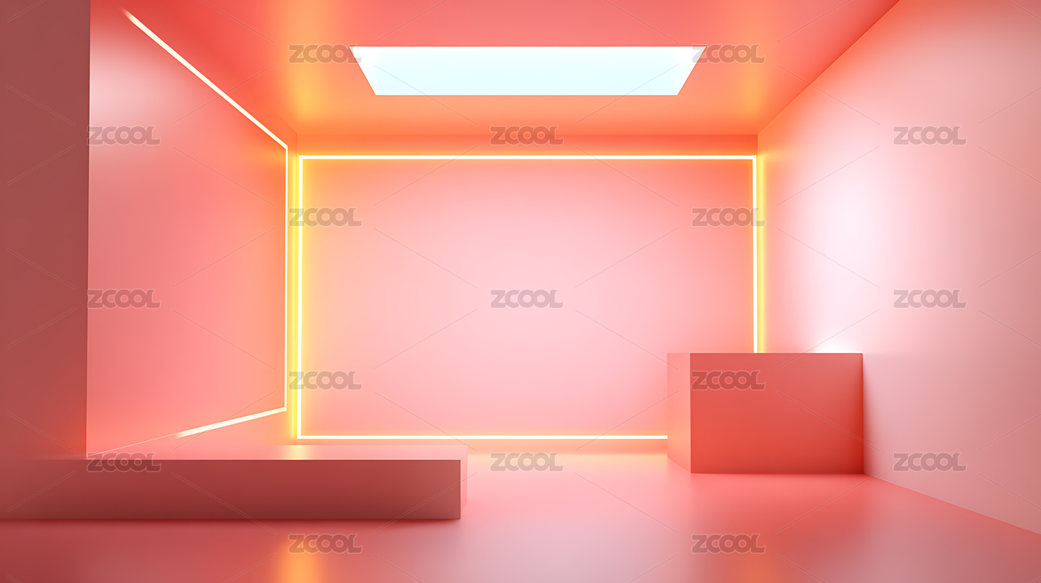 橙色现代几何建筑空间平台3D渲染抽象背景