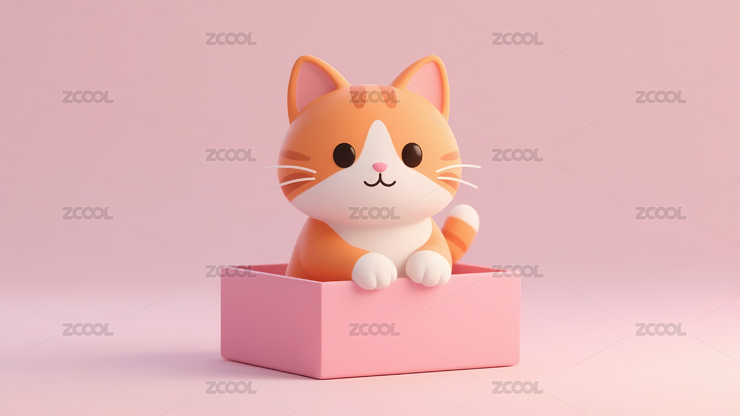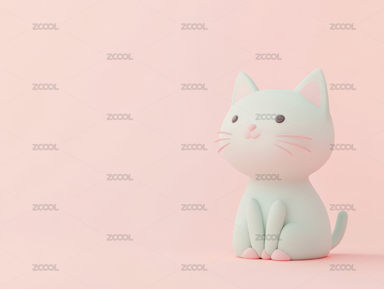 可爱的,小猫,猫咪,3D,粉色,背景,动物