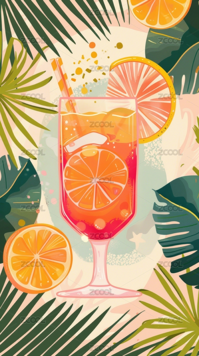 夏天女孩在室内吃西瓜喝饮料矢量海报插画