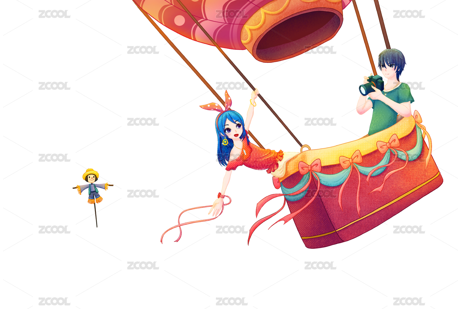 情侣坐热气球旅行元素