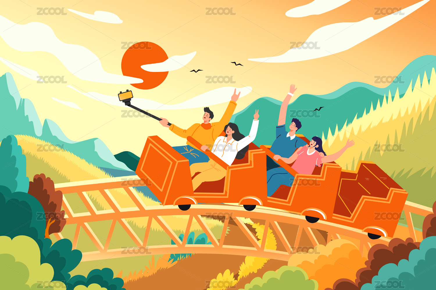 秋季过山车娱乐项目矢量插画
