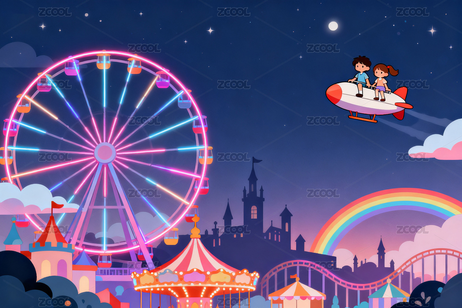 夜空下的游乐园梦幻场景