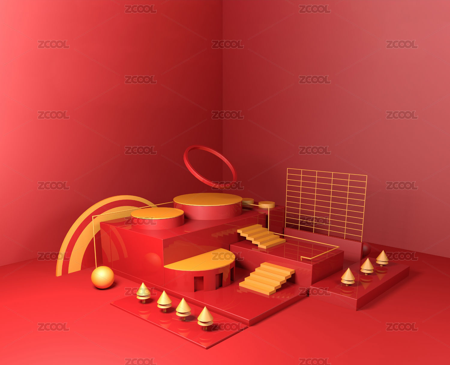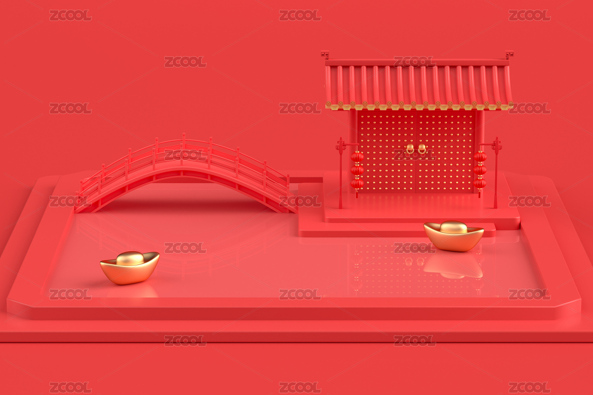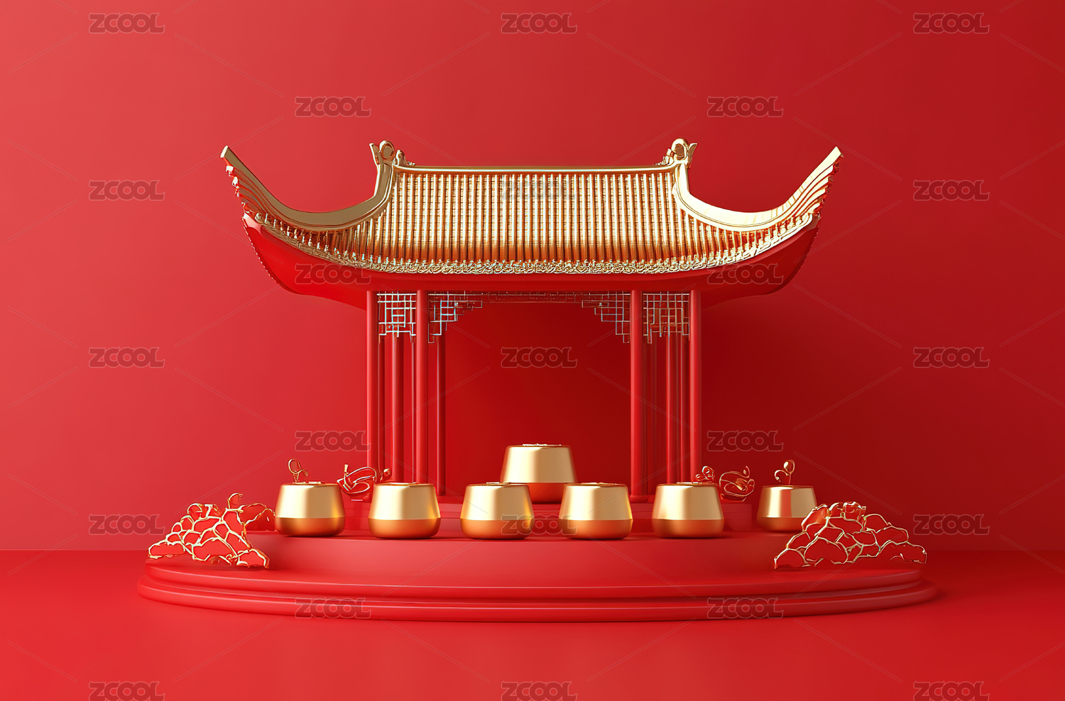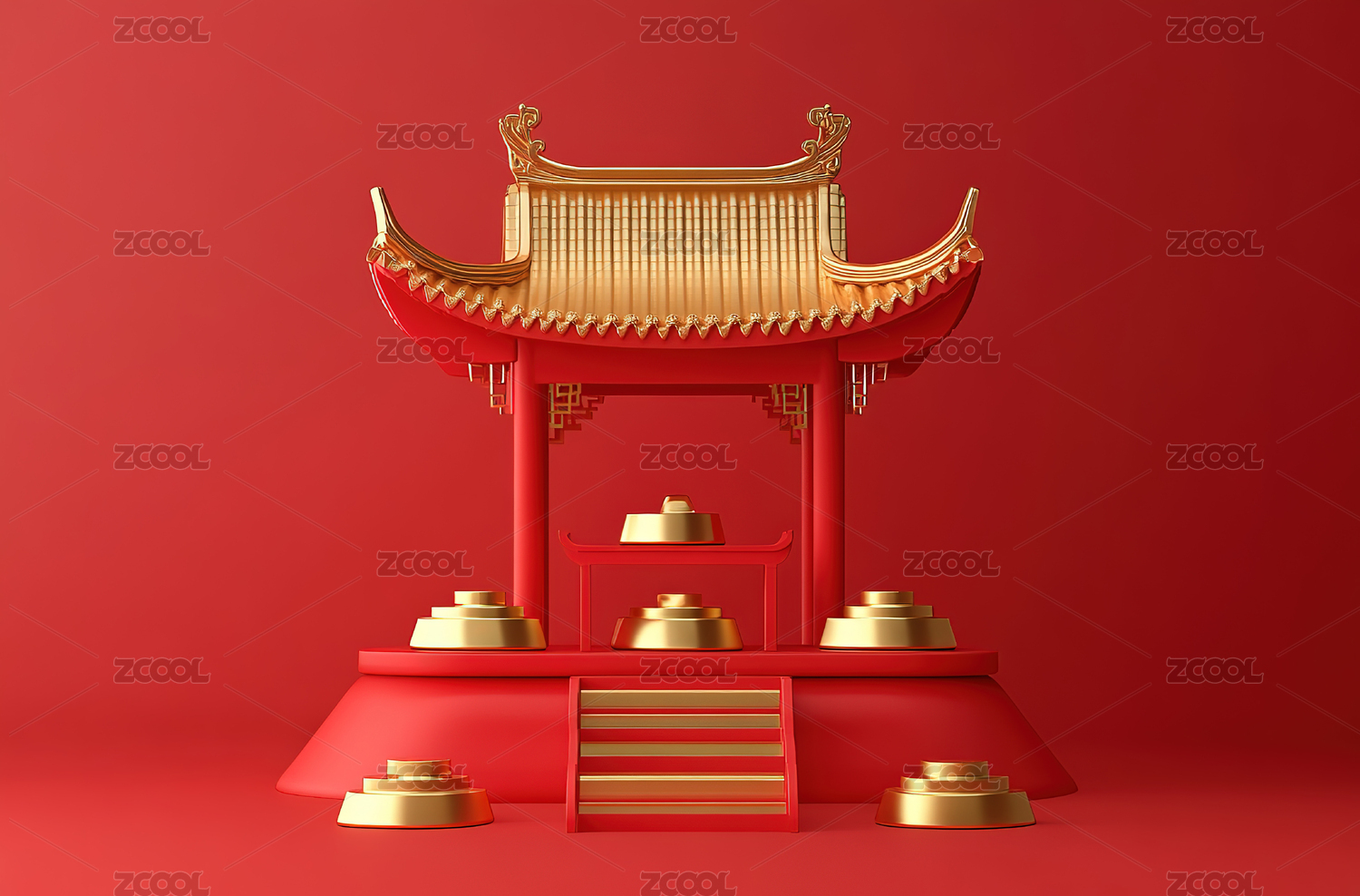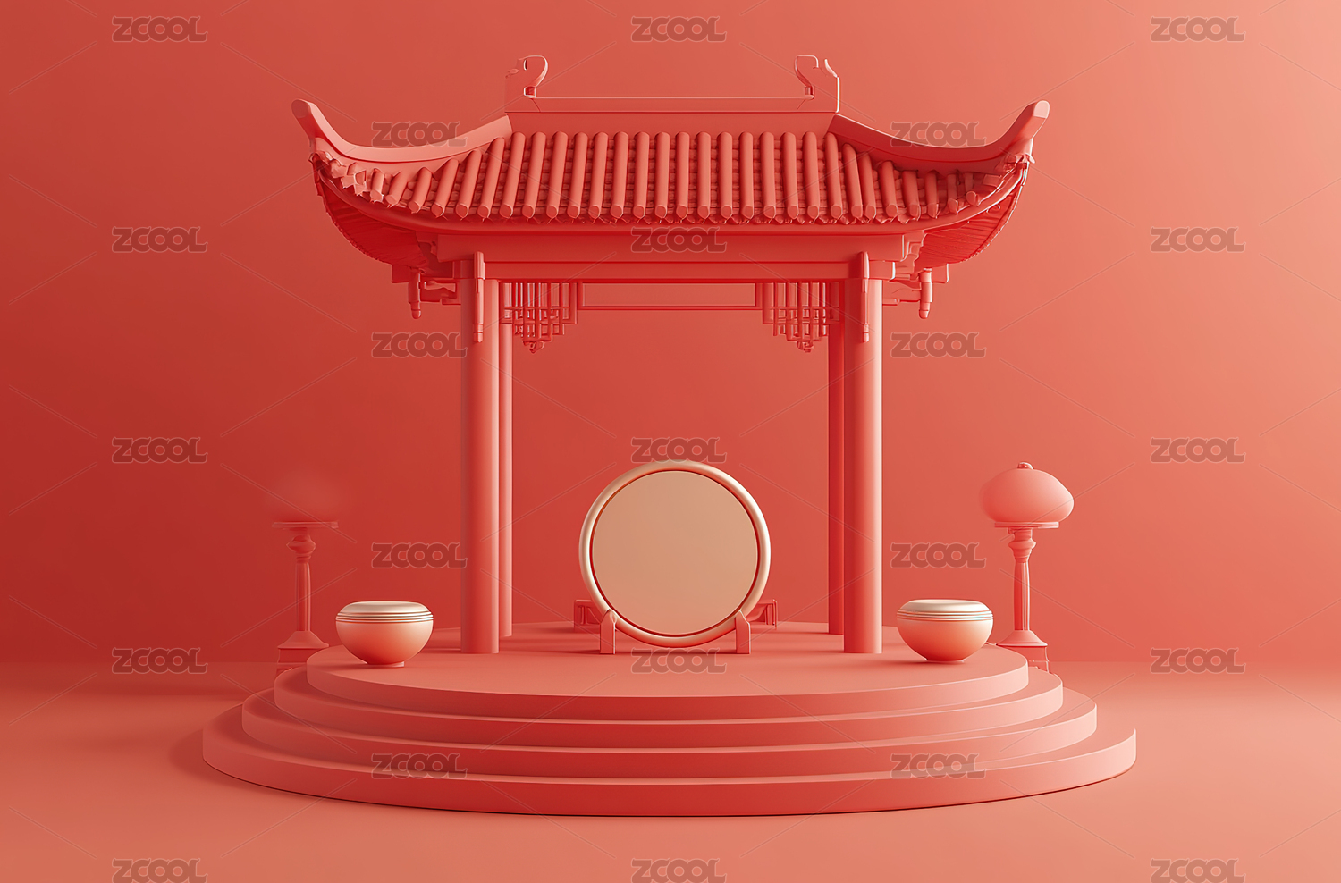 插画,3d,中国,中国风,亚洲,产品,传统,场景,小场景,展台