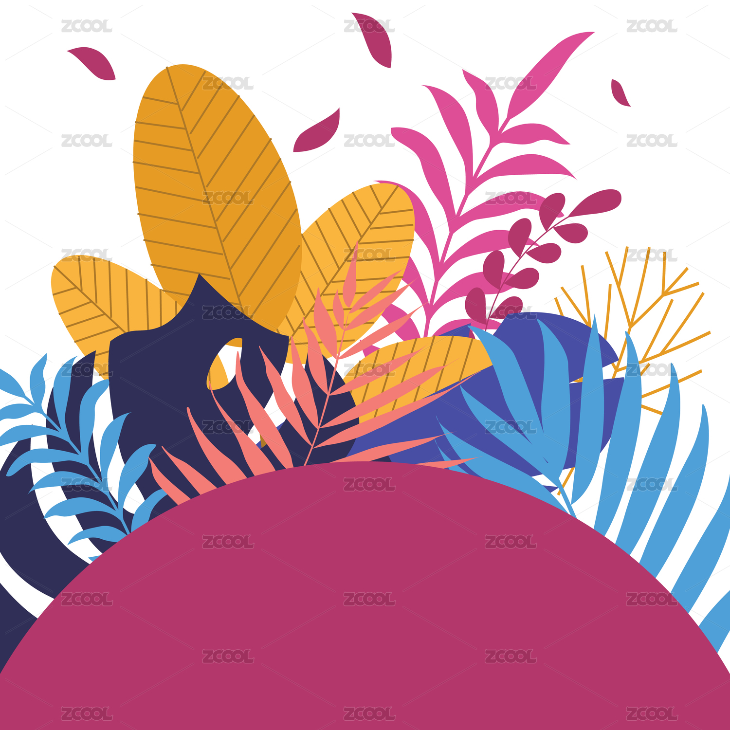 简约矢量剪纸剪影风格植物叶子装饰插画