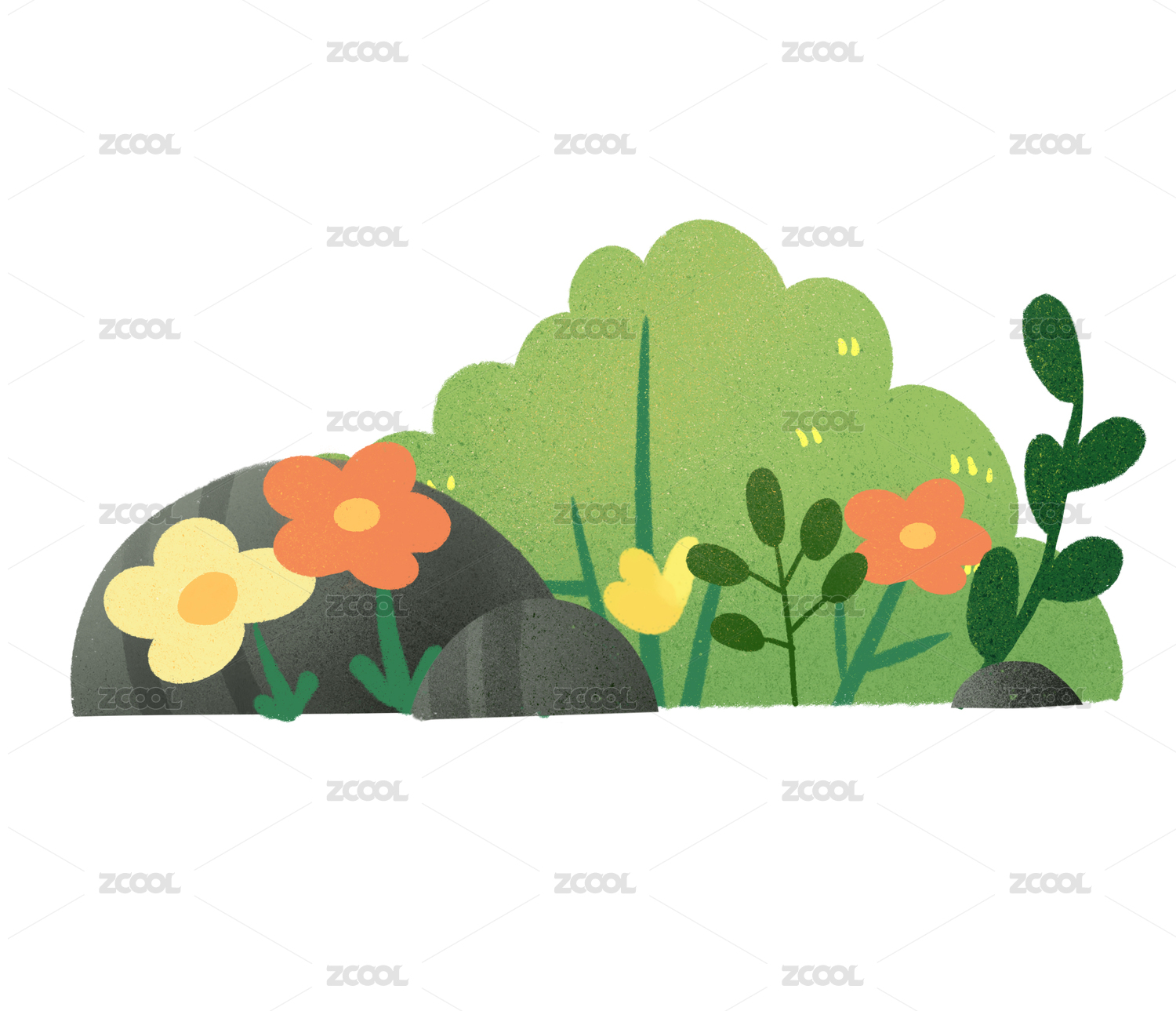 草丛,植物,花,绿色,蓝色,黄色,儿童插画,扁平风,卡通,插画