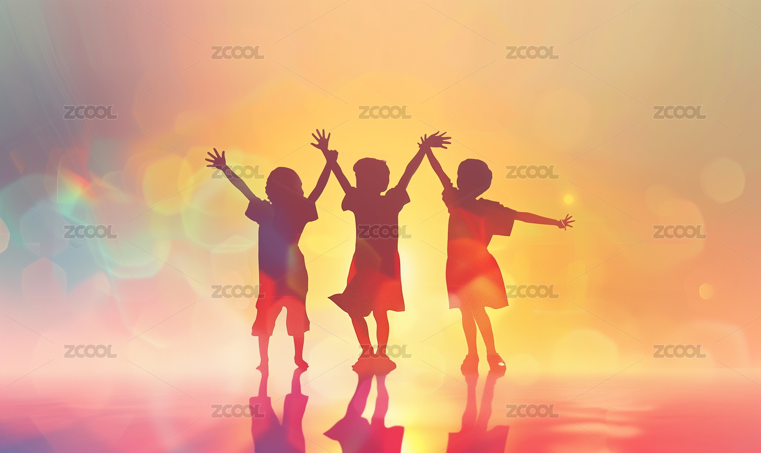 儿童节儿童剪影插画