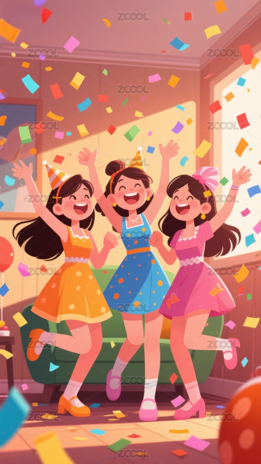 聚会的3个女孩子