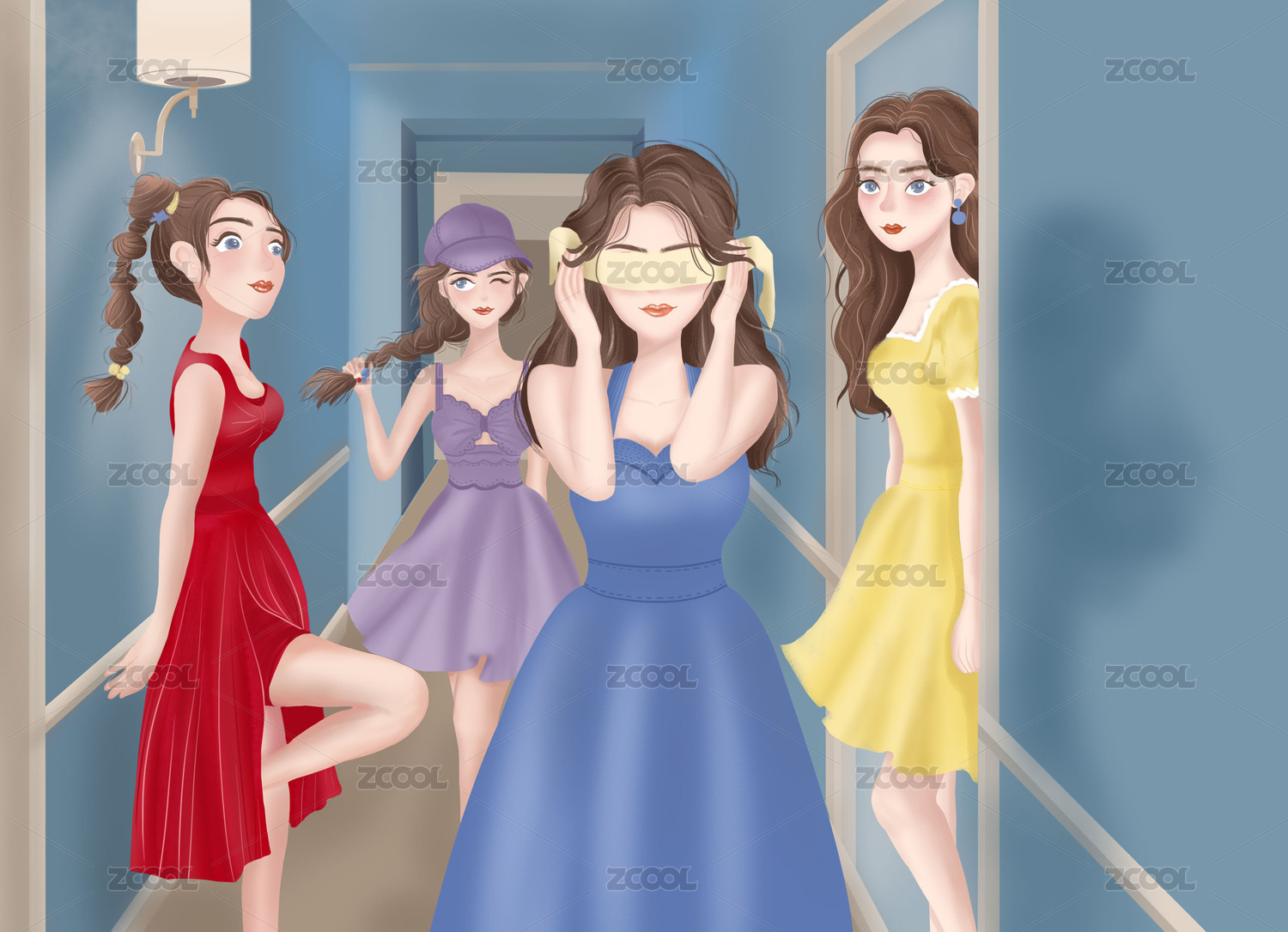 在走廊跳舞的女孩们