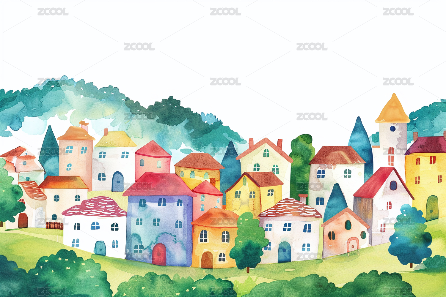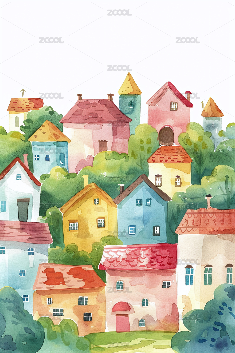 儿童插画,童话,绘本,封面,装饰画,小镇,建筑