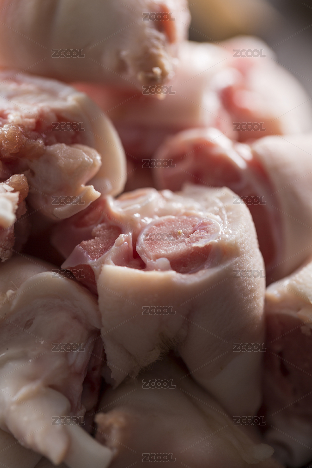 分割成合适大小的猪脆骨特写