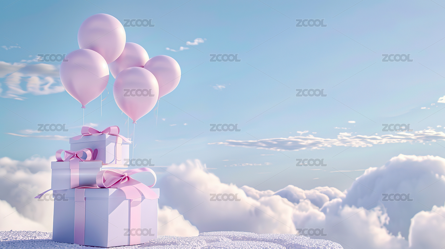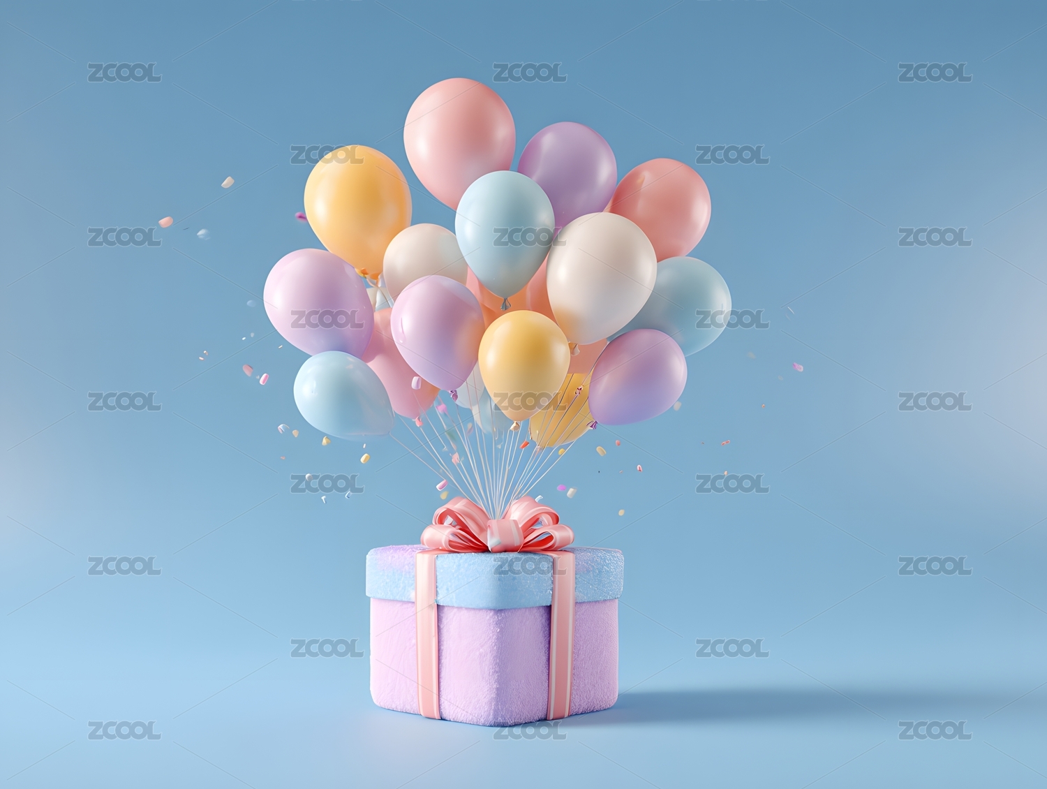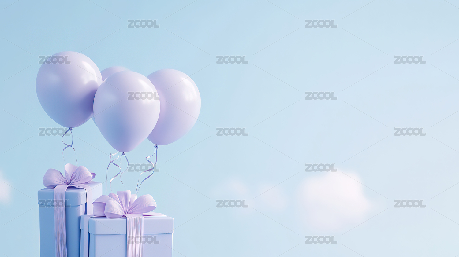 蓝色背景下的圣诞礼物和气球的特写镜头