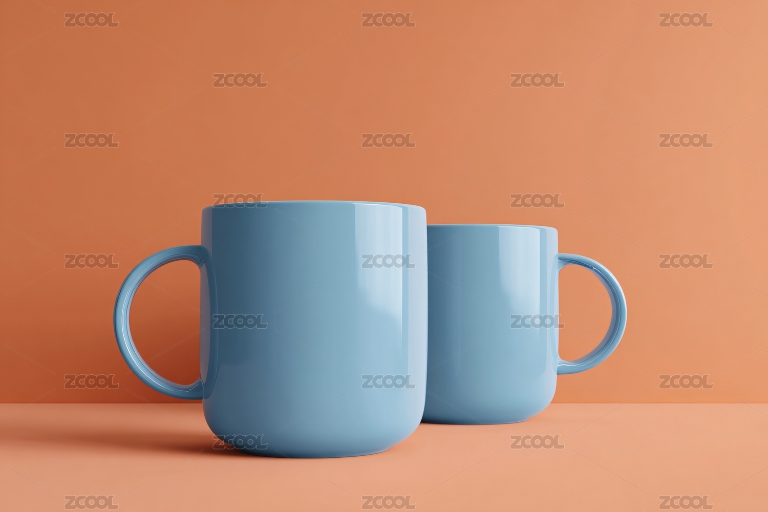 两个色彩缤纷咖啡杯并排放在桌子上图片