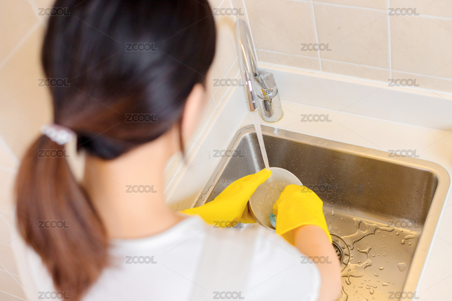 女士洗碗