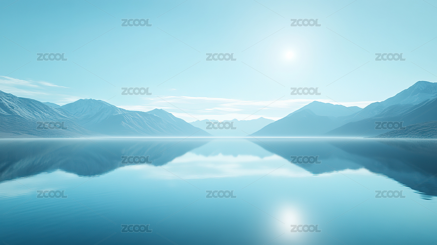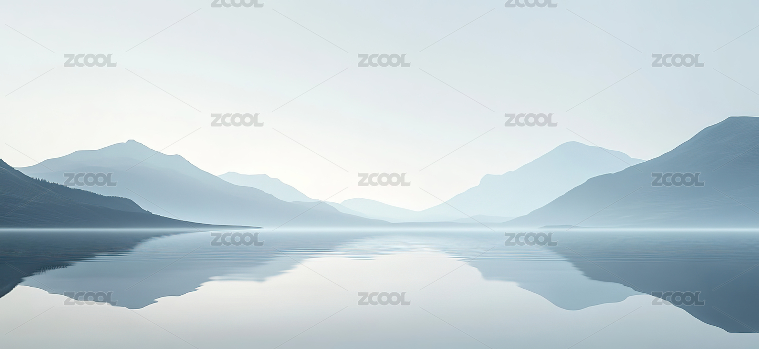 平静湖面与远山