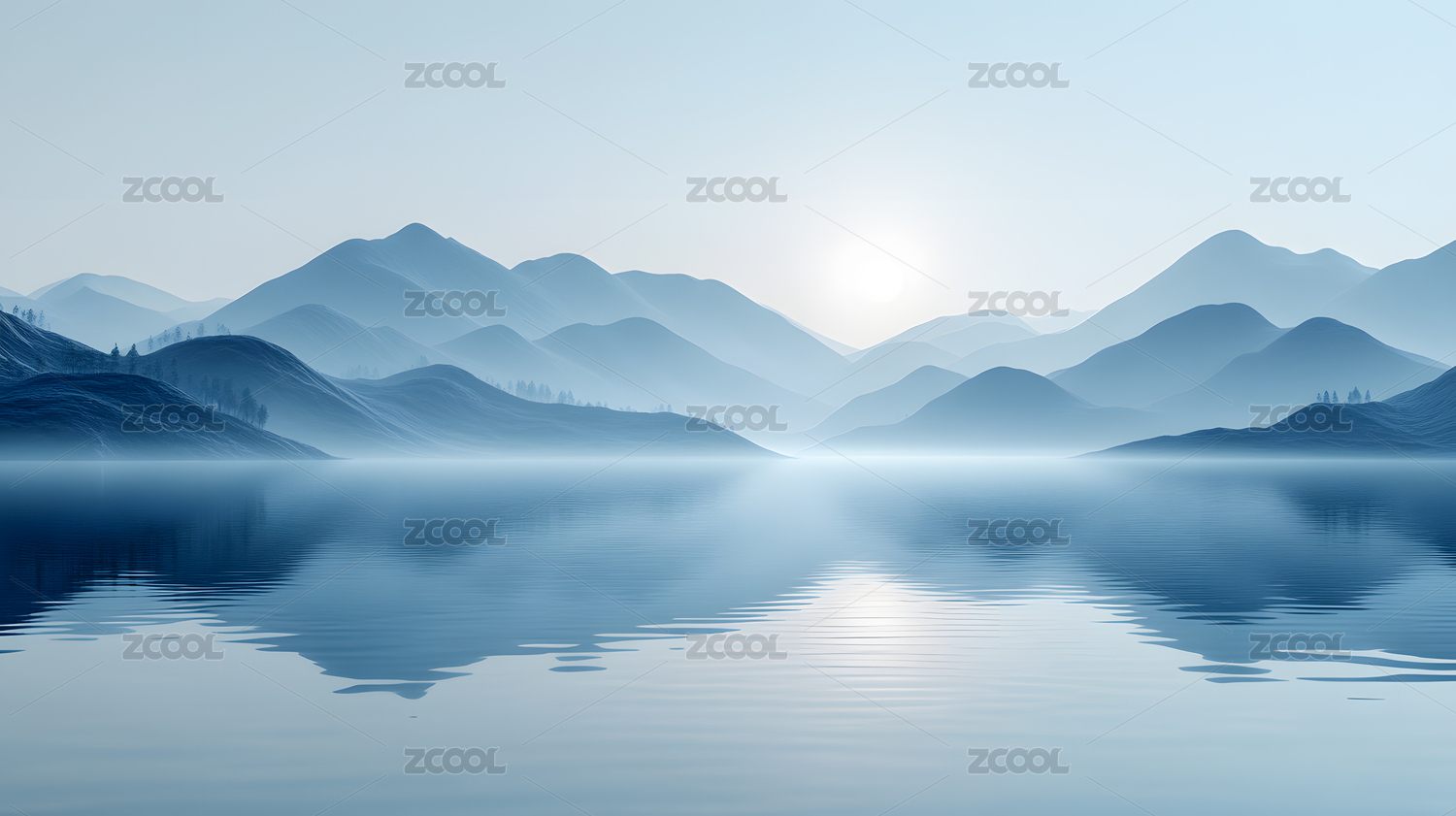 湖山蓝色倒影风光