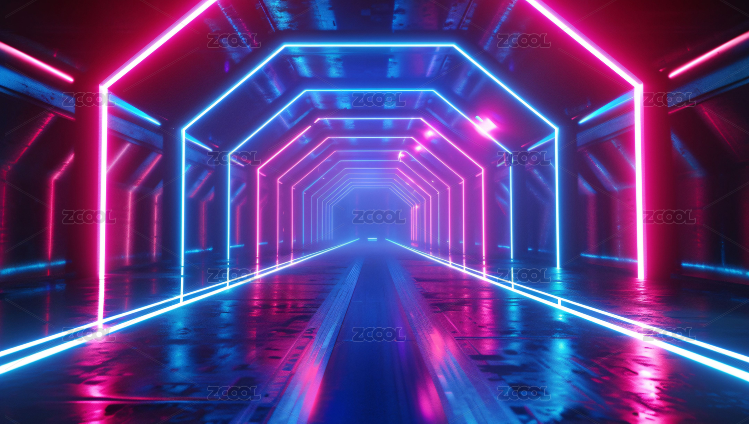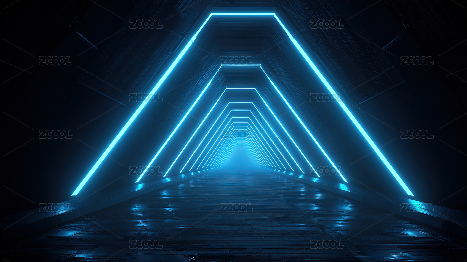 蓝色霓虹灯隧道的未来感场景
