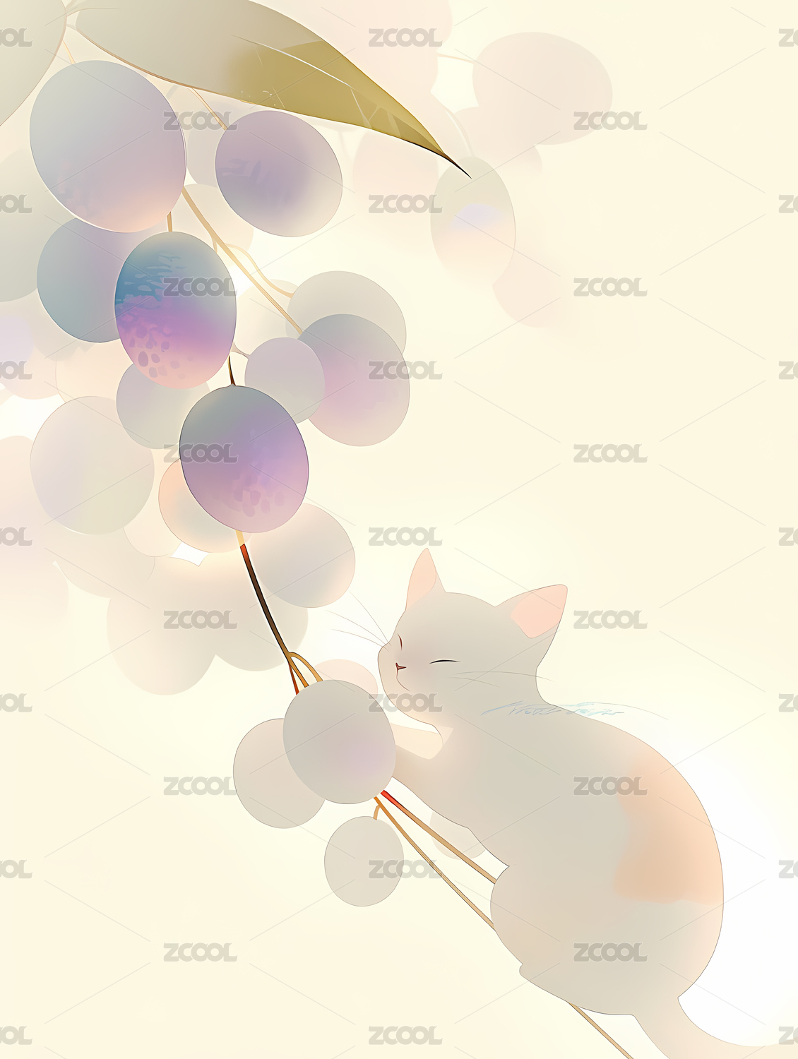 新中式葡萄和猫壁纸