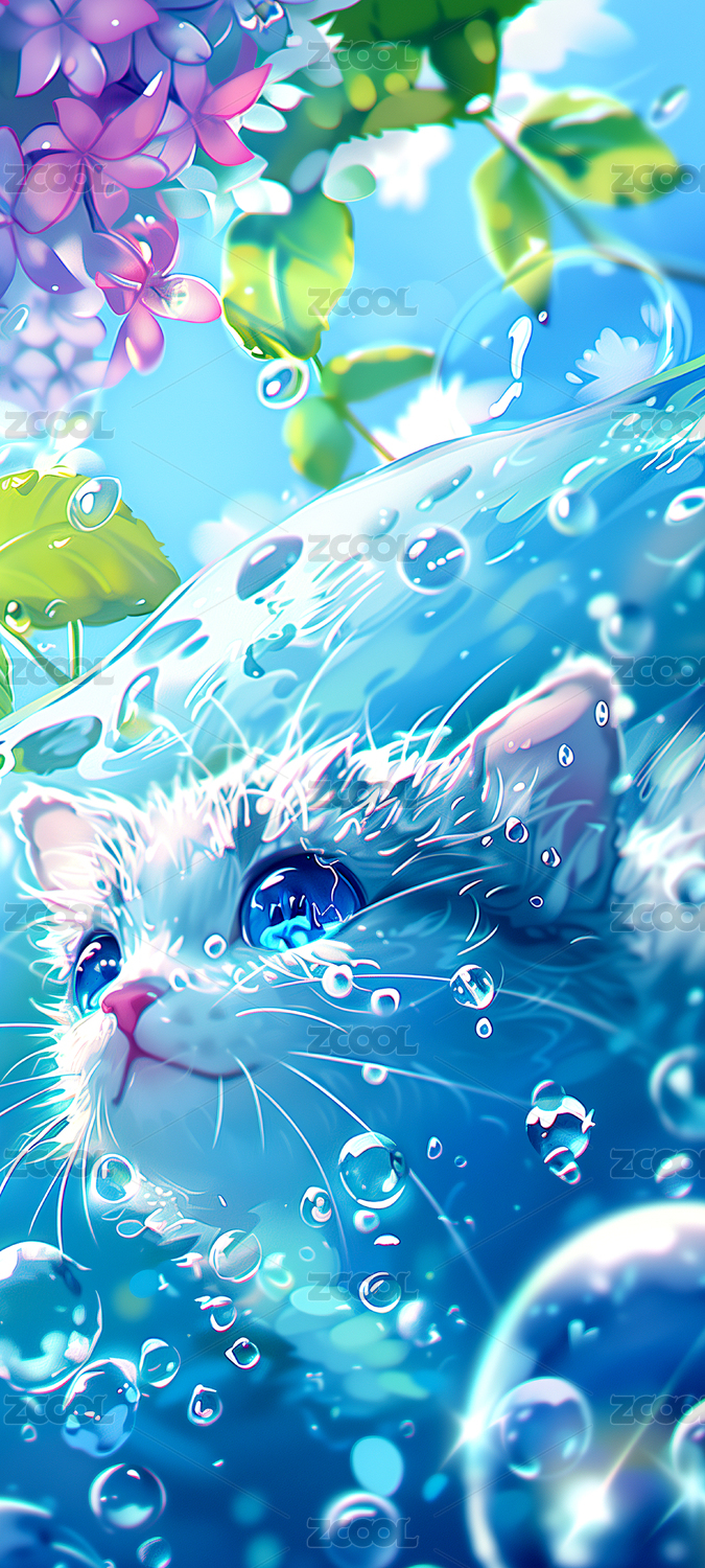 水中水珠清澈猫