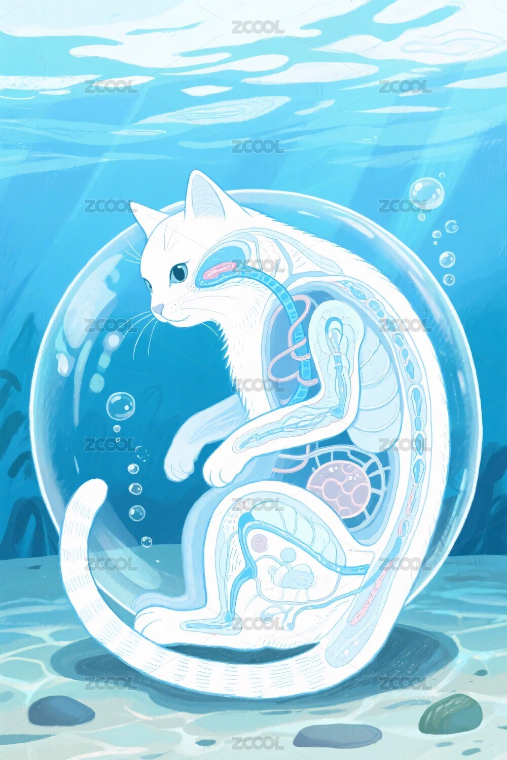 透明气泡里的卡通猫