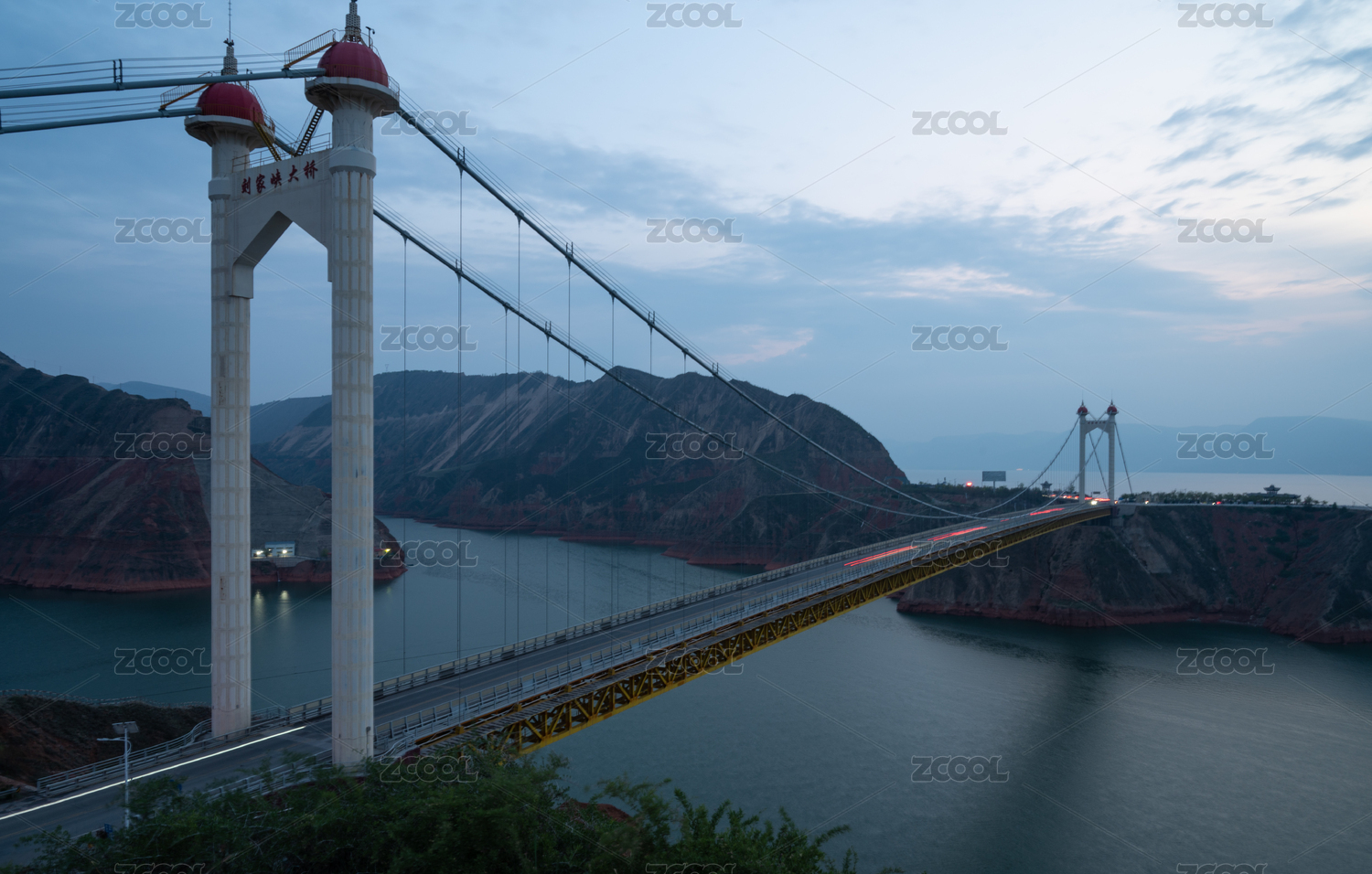 甘肃临夏刘家峡水库桥梁建筑天空晚霞风光