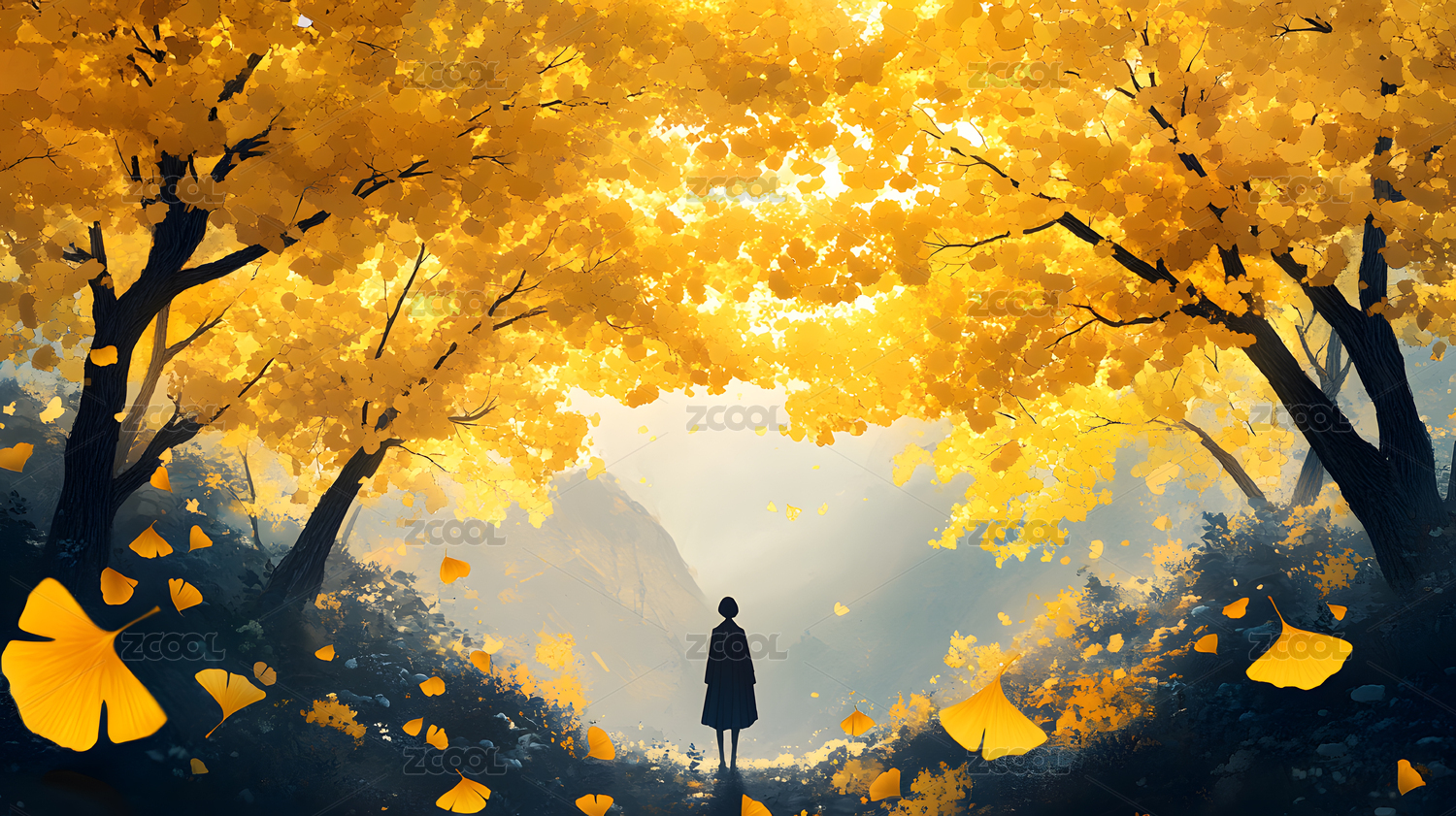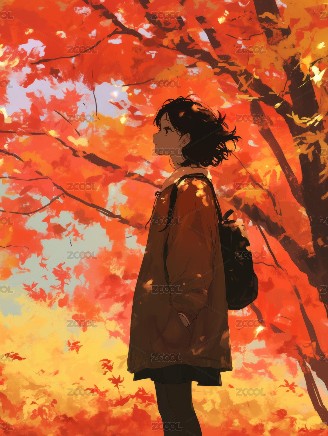 插画,插图,背景,动漫,壁纸,秋天,落叶,枫树,秋色,树林