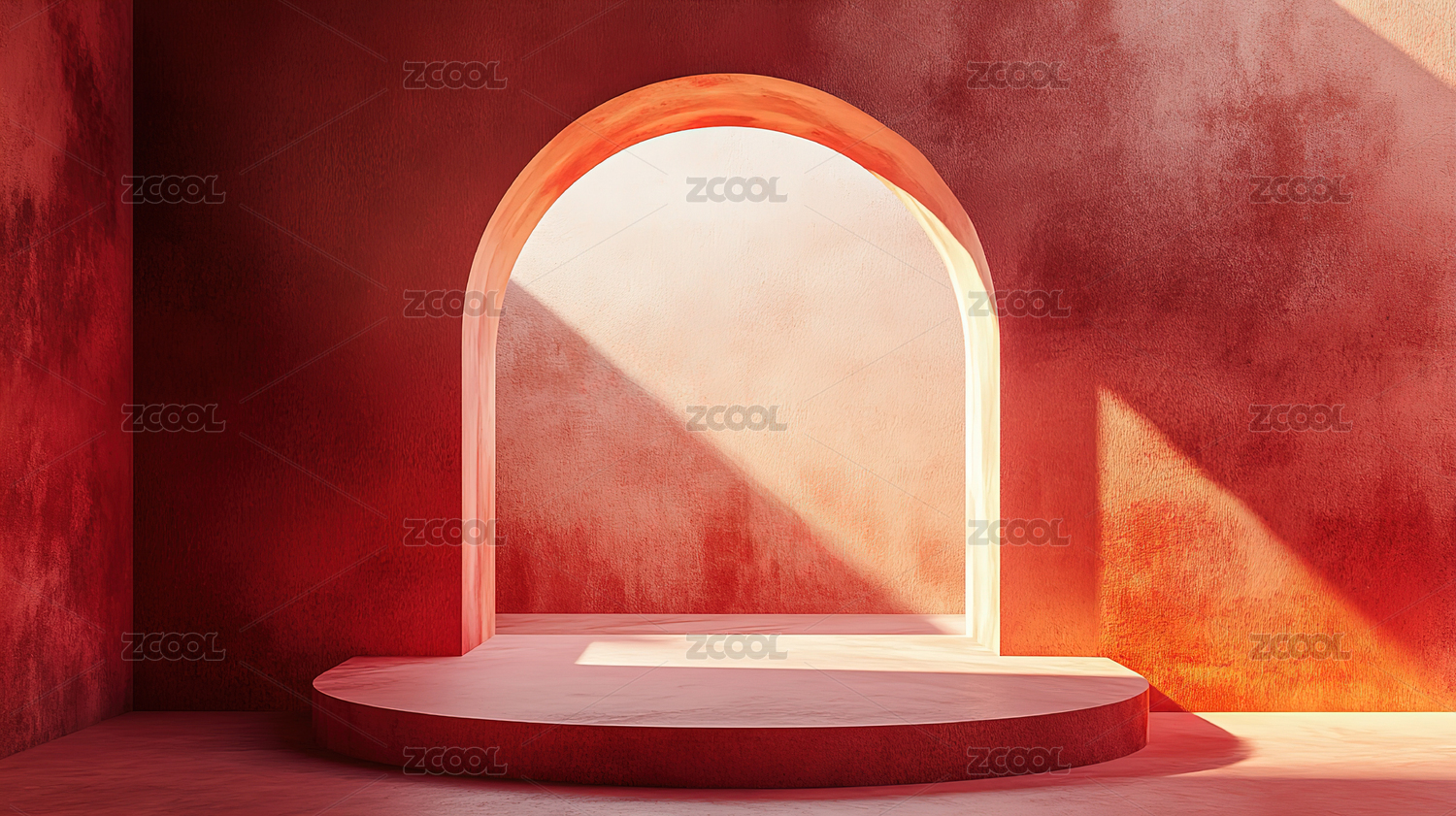 红色背景的建筑空间