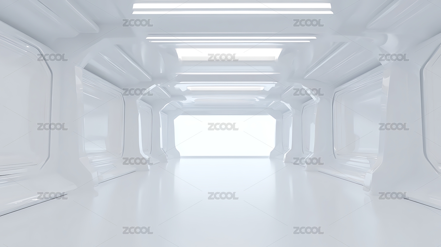 现代风格白色明亮的有着圆形窗户的室内建筑