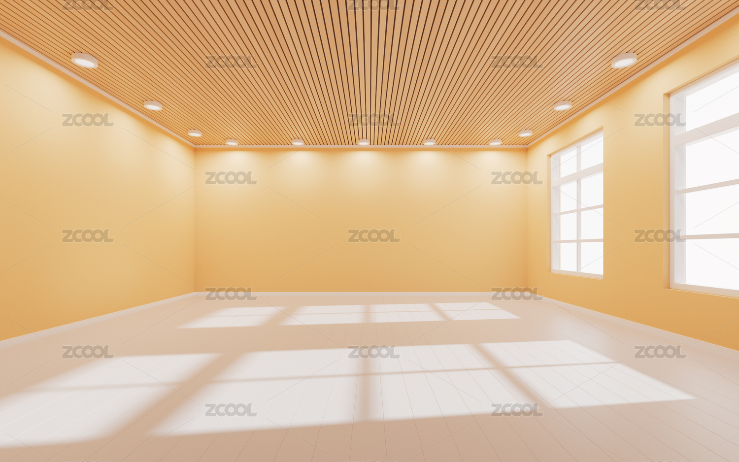 阳光照入室内空房间3D渲染