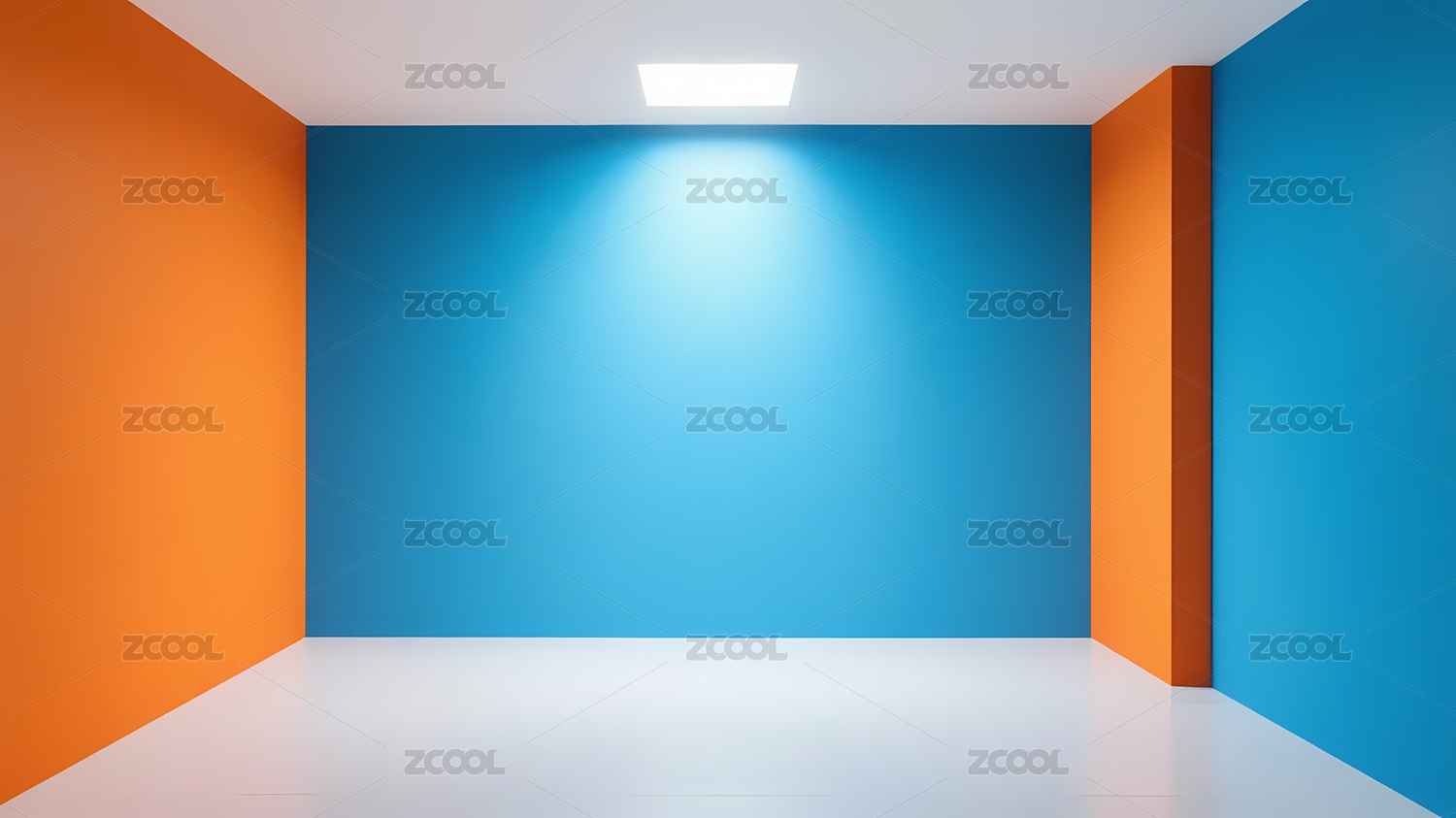 蓝橙墙面配明亮灯光