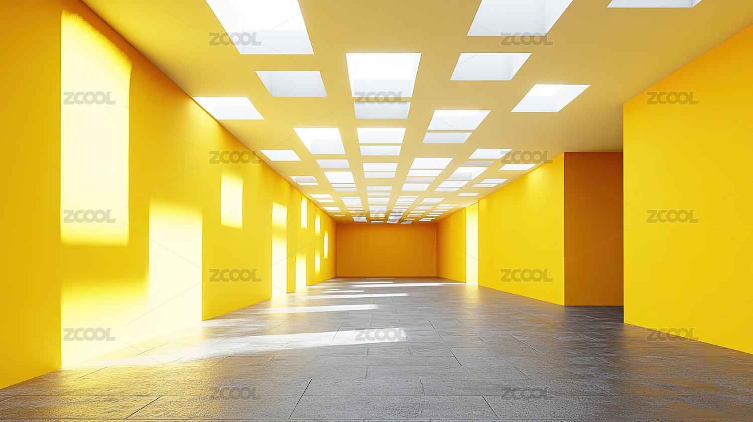 黄色走廊的现代空间