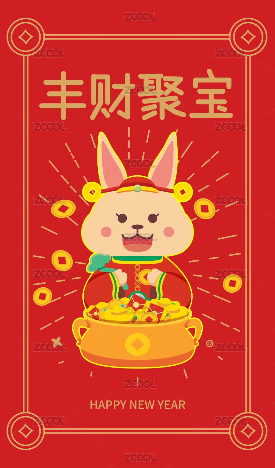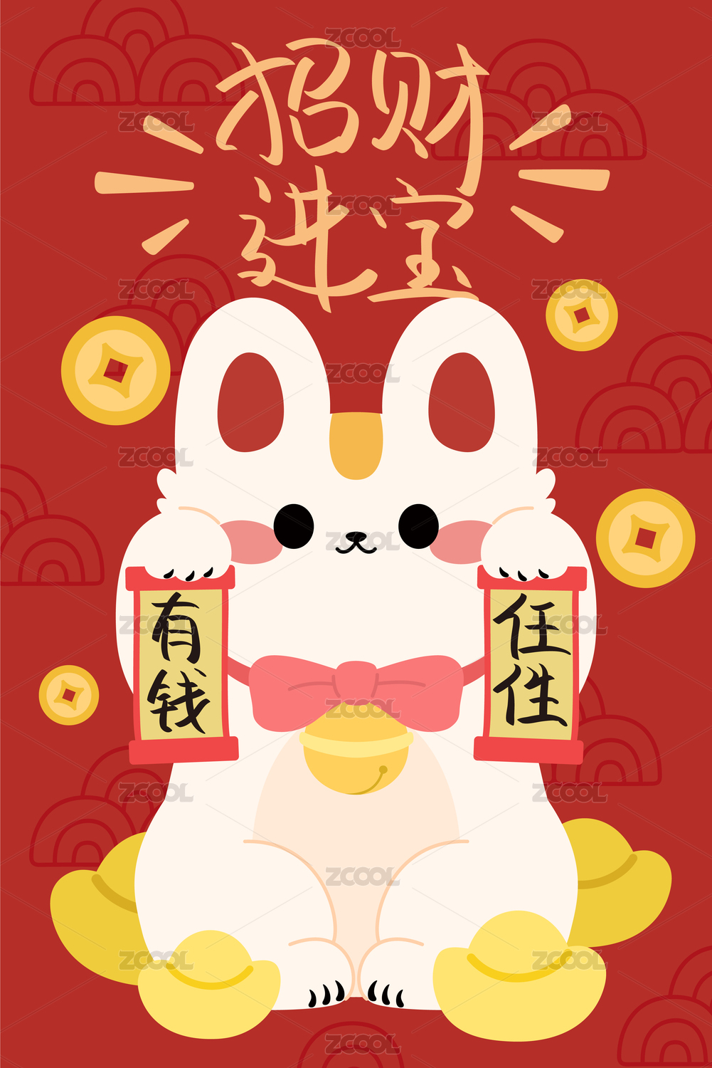 可爱卡通动物新年大吉大利招财猫红包壁纸