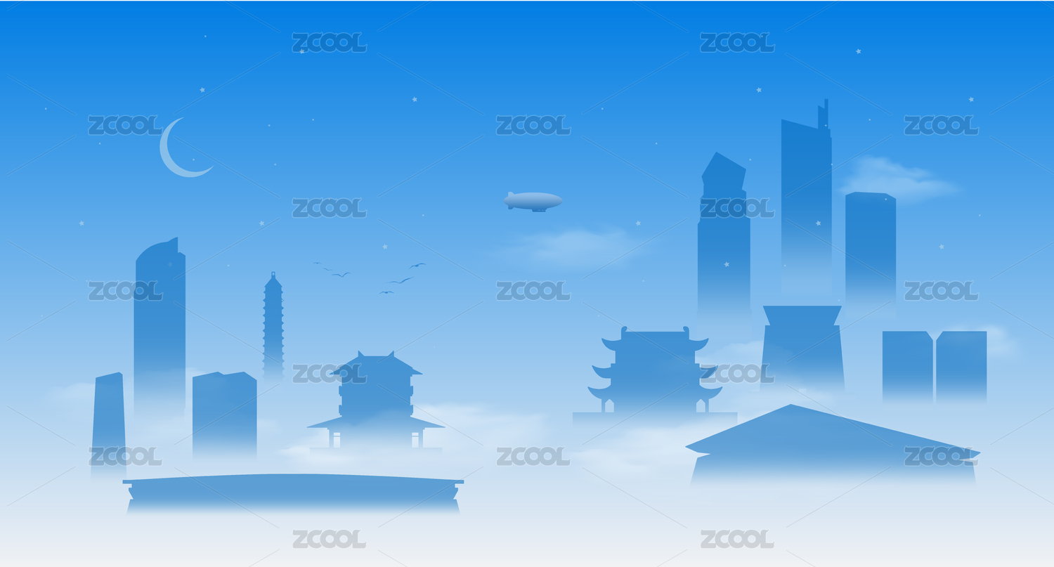 中国澳门城市建筑风景蓝色夜景扁平插画