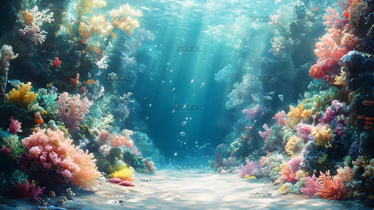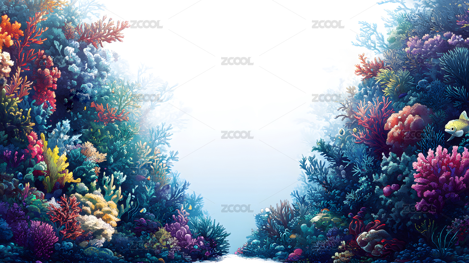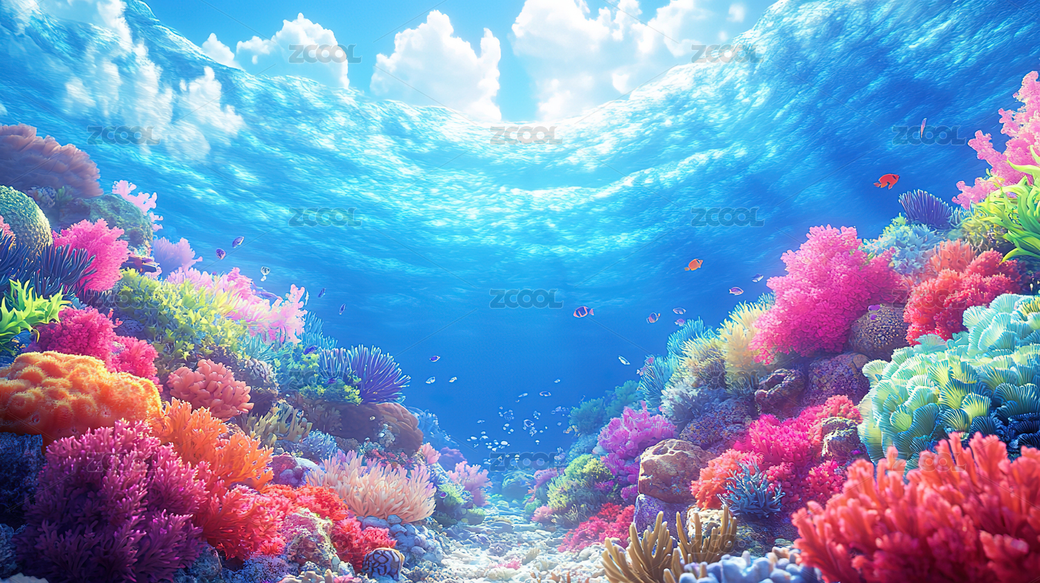 彩色,珊瑚,海底世界,插画,海洋,水下摄影,海洋生命,礁石,自然,海底