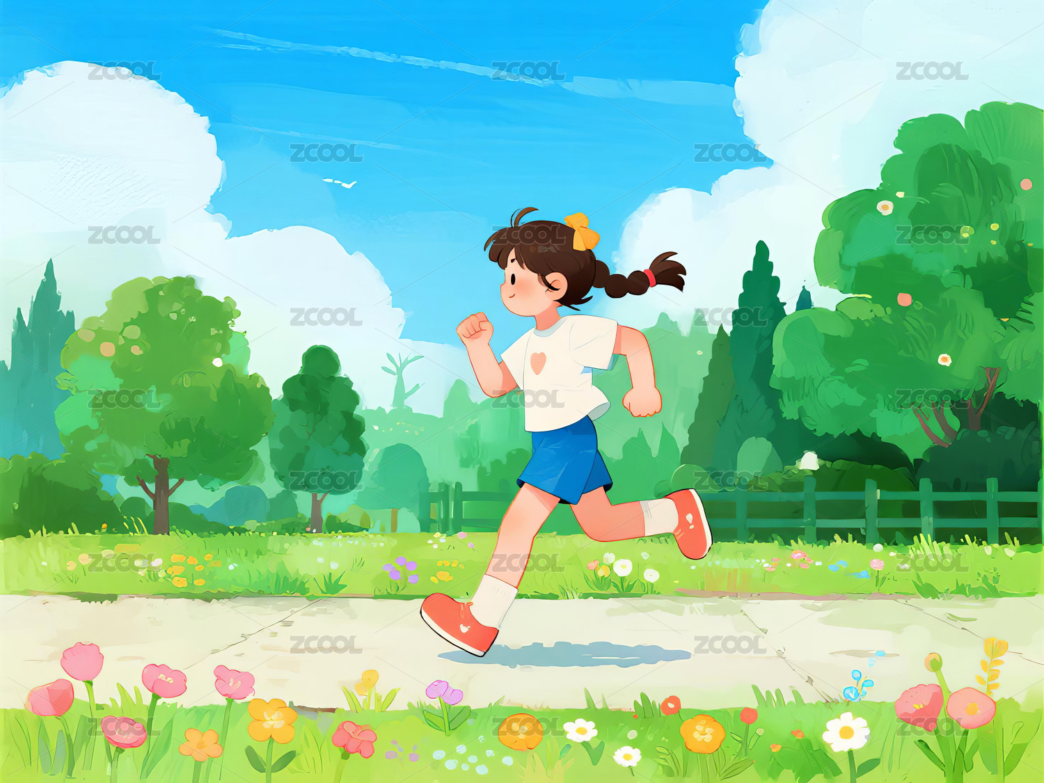 夏天跑步运动锻炼身体减肥儿童节运动员插画