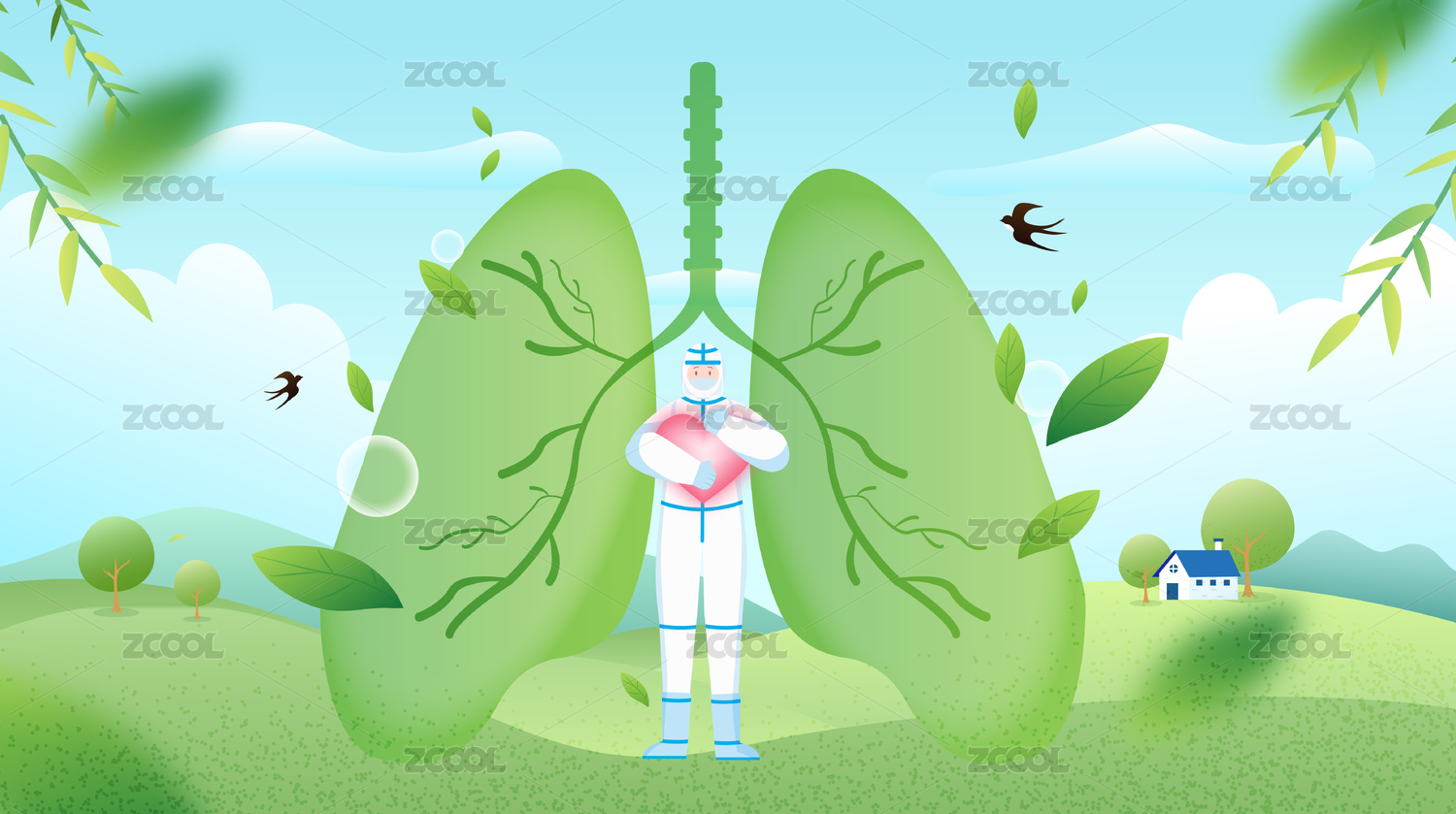 草地上绿色健康肺