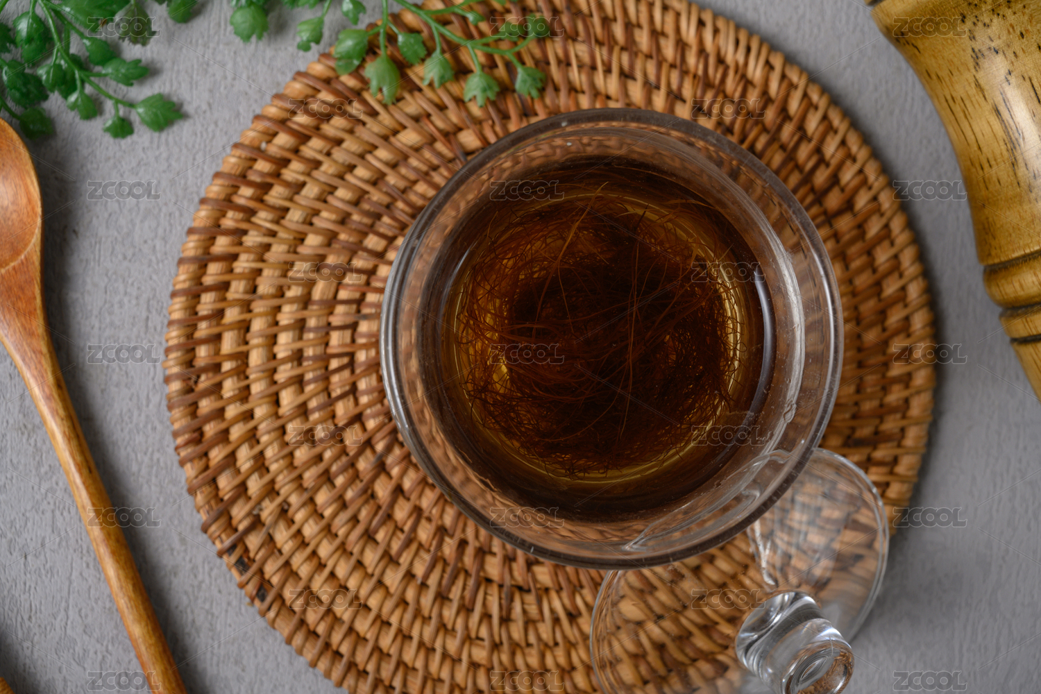 桌面上的杯子里的甘甜可口的茉莉吐珠茶