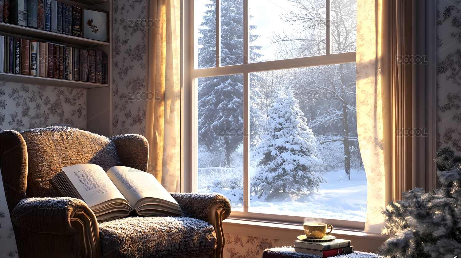 窗边阅读冬日雪景