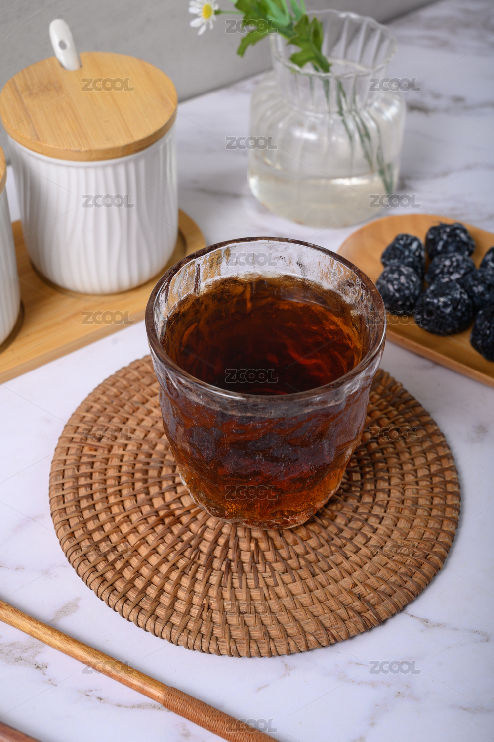 桌面上的杯子里的香甜可口的牡丹花苞茶