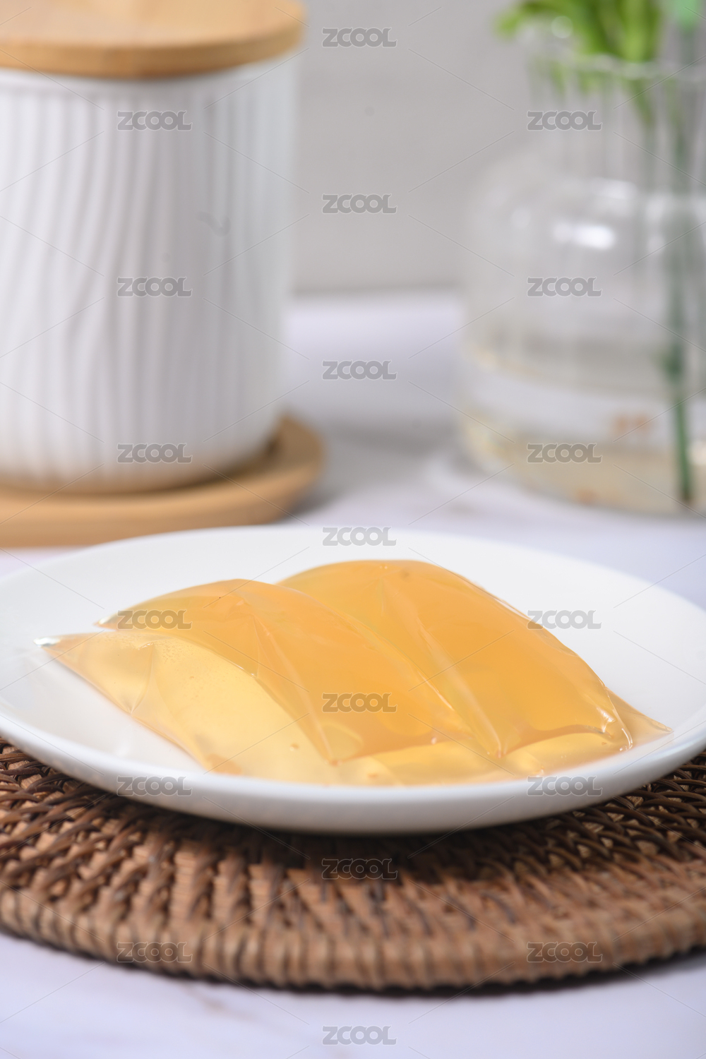 桌面上的盘子里的美味可口的刺梨冻
