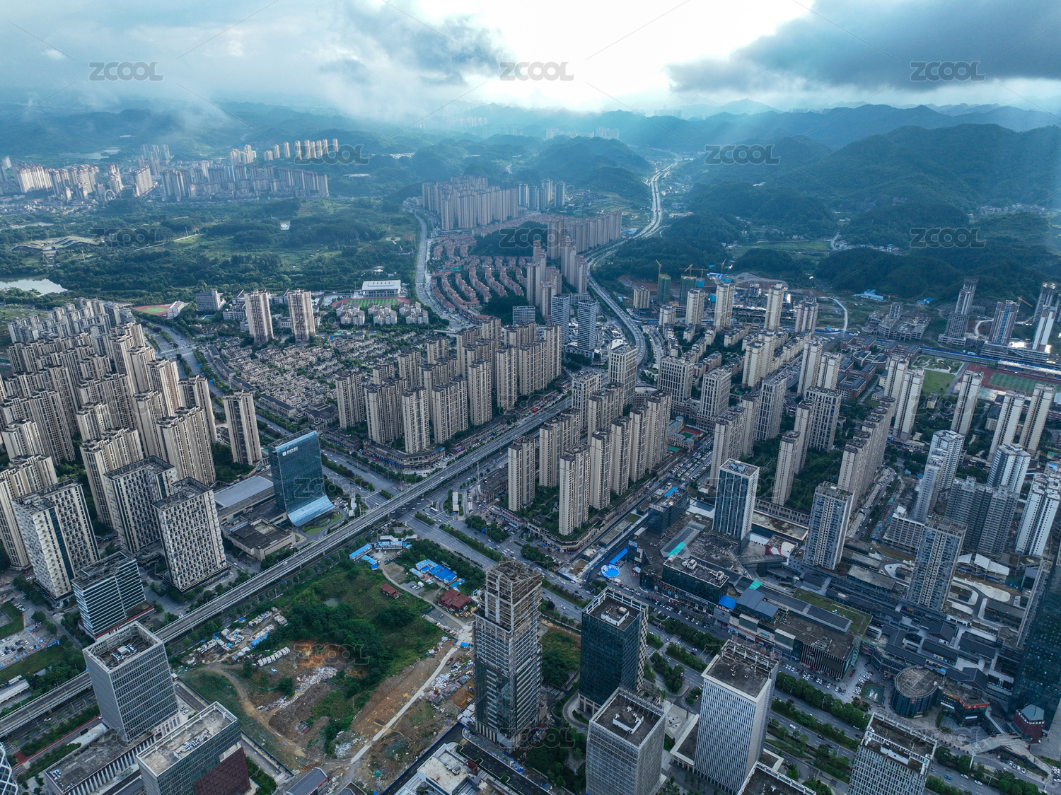 清晨日出前后的杭州滨江城市建筑风景航拍