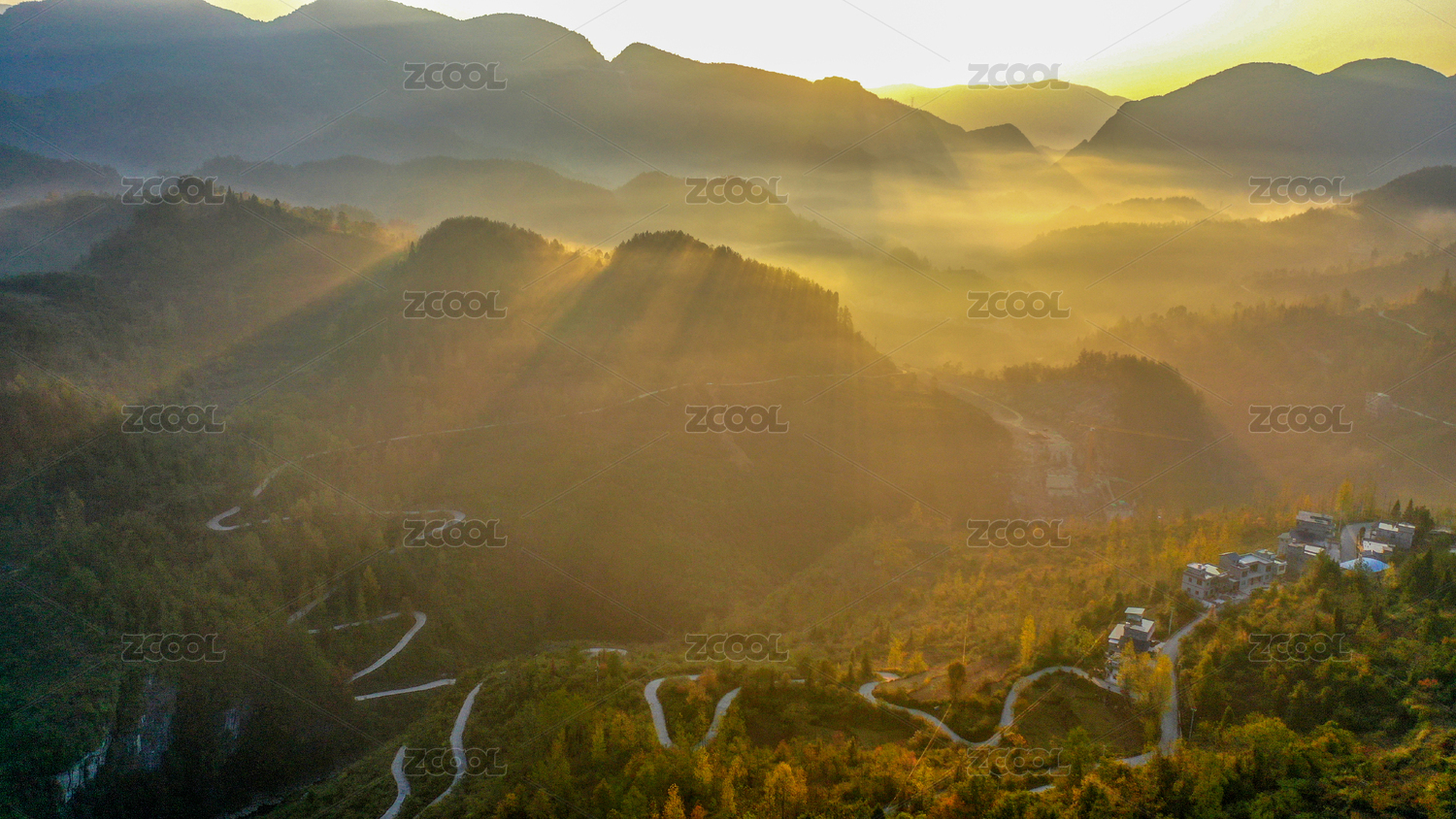 亚洲,中国,重庆,酉阳,乡村,日出,秋天,早晨,风景,无人