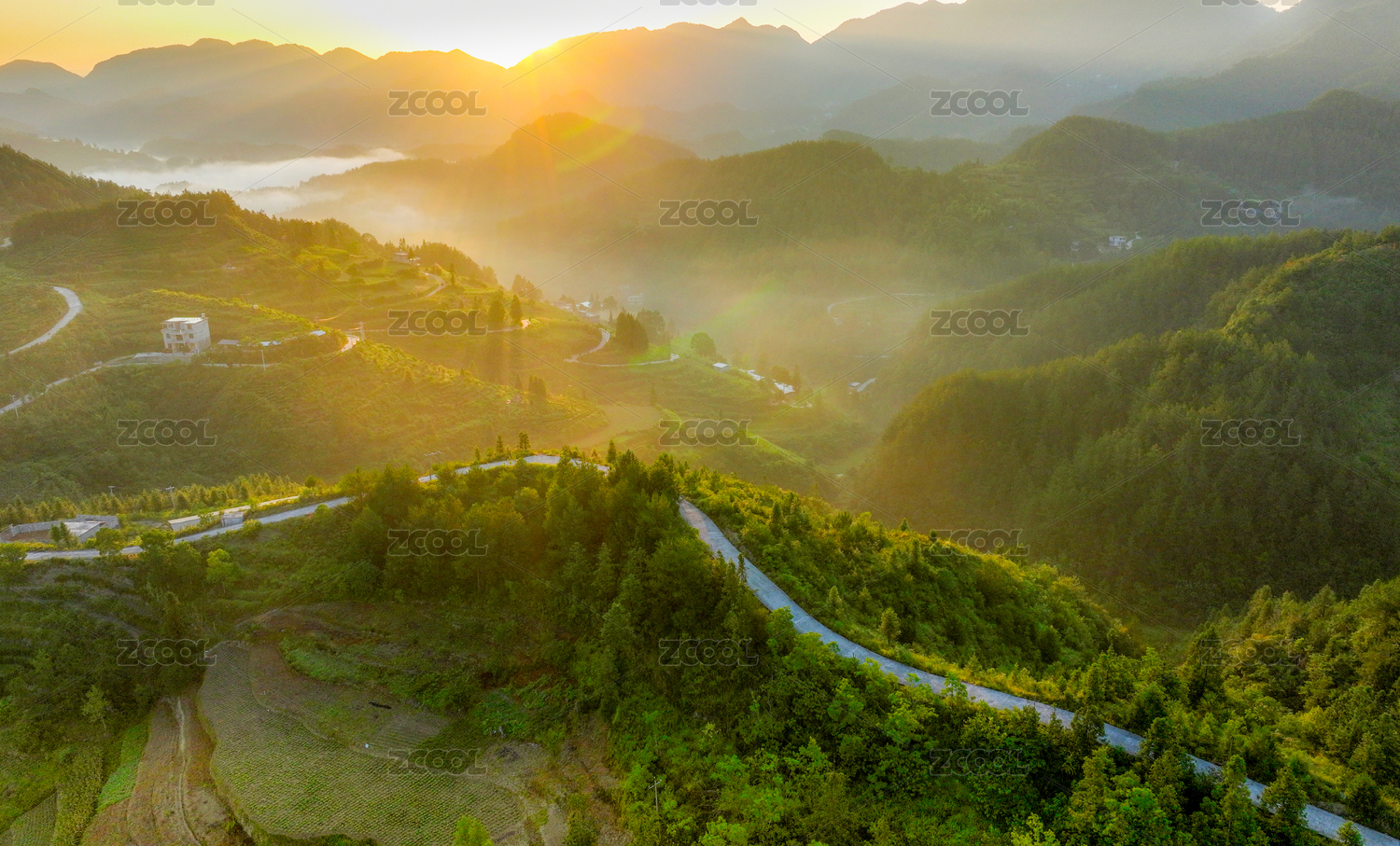夏阳初露薄雾扮美乡村
