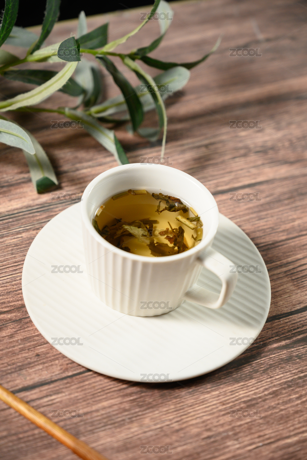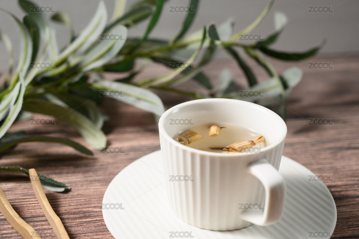 桌面上的杯子里的的甘甜可口的西洋参茶