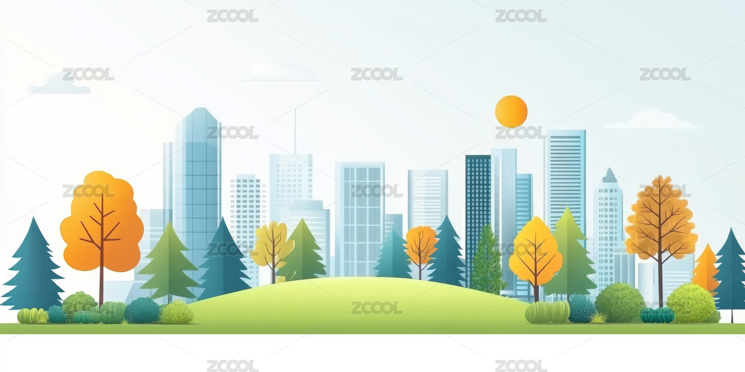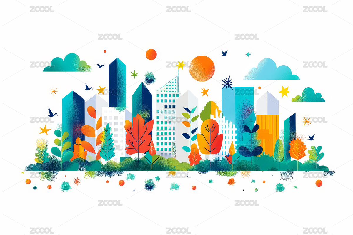 未来,创意,环保,插画,自然,建筑,生态,树木,绿化,彩色