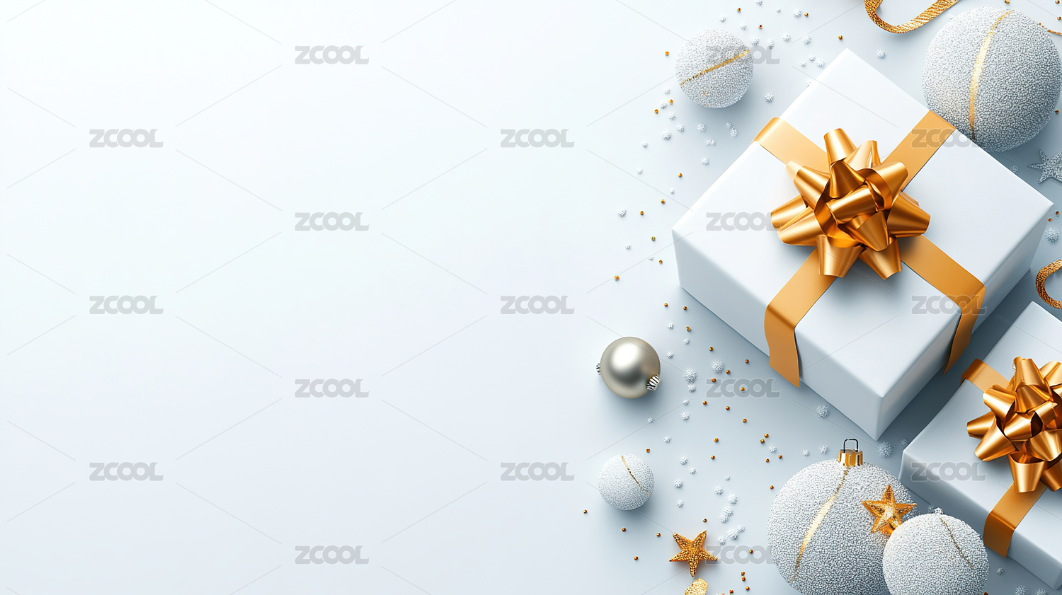 金色背景上的白色礼盒和金色装饰