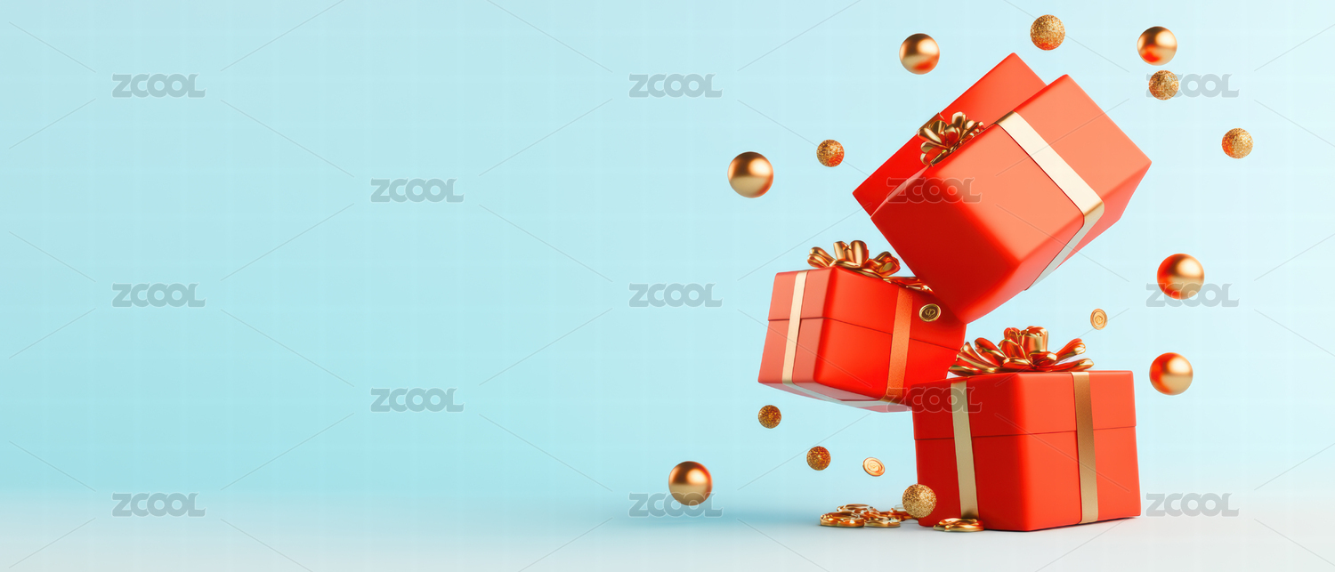 红色礼品盒和金色装饰物