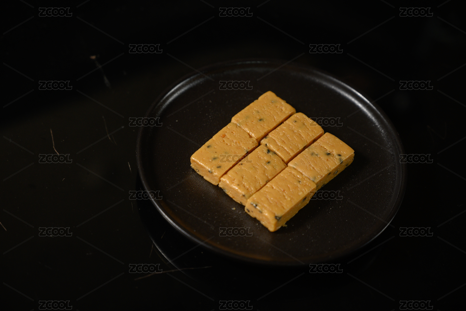 桌面上的盘子里的美味可口的夹心山楂奶糕
